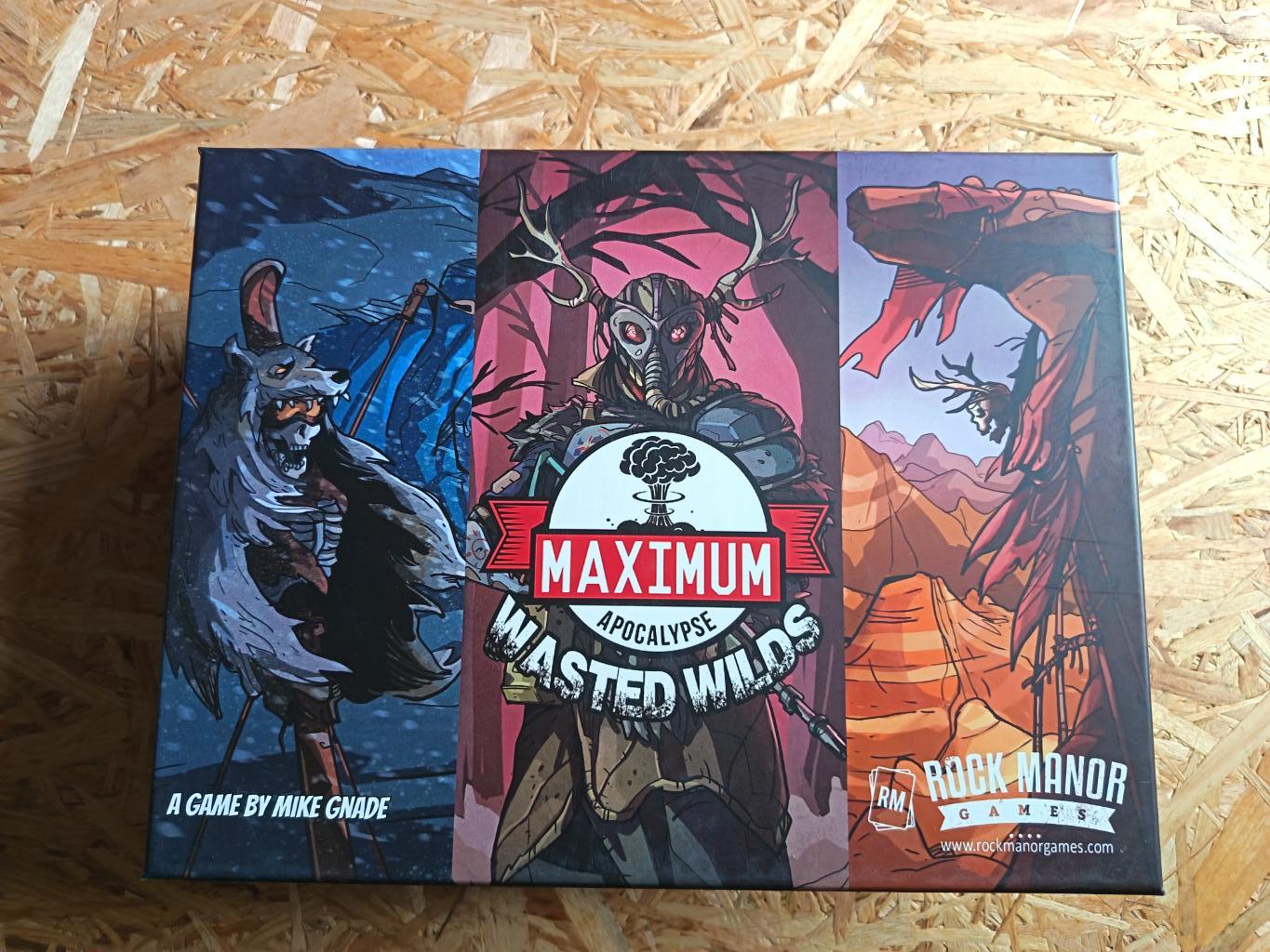 Jeu Maximum Apocalypse - Wasted Wilds 2nde édition avec figurines et composants deluxe. Extension Time Traveler présente dans la boîte.