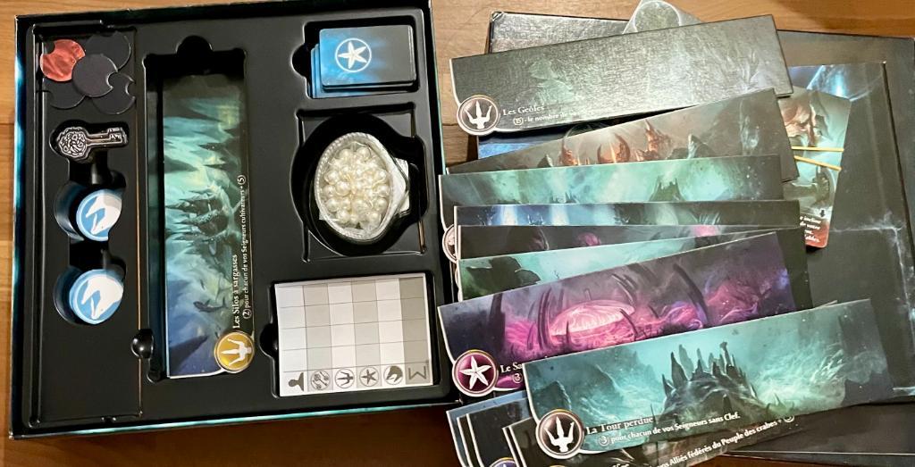L'état du jeu est excellent (cartes, tuiles, matériel...) - cependant la boîte un peu abîmée sur les coins - Le jeu a été peu joué (moins de cinq parties).