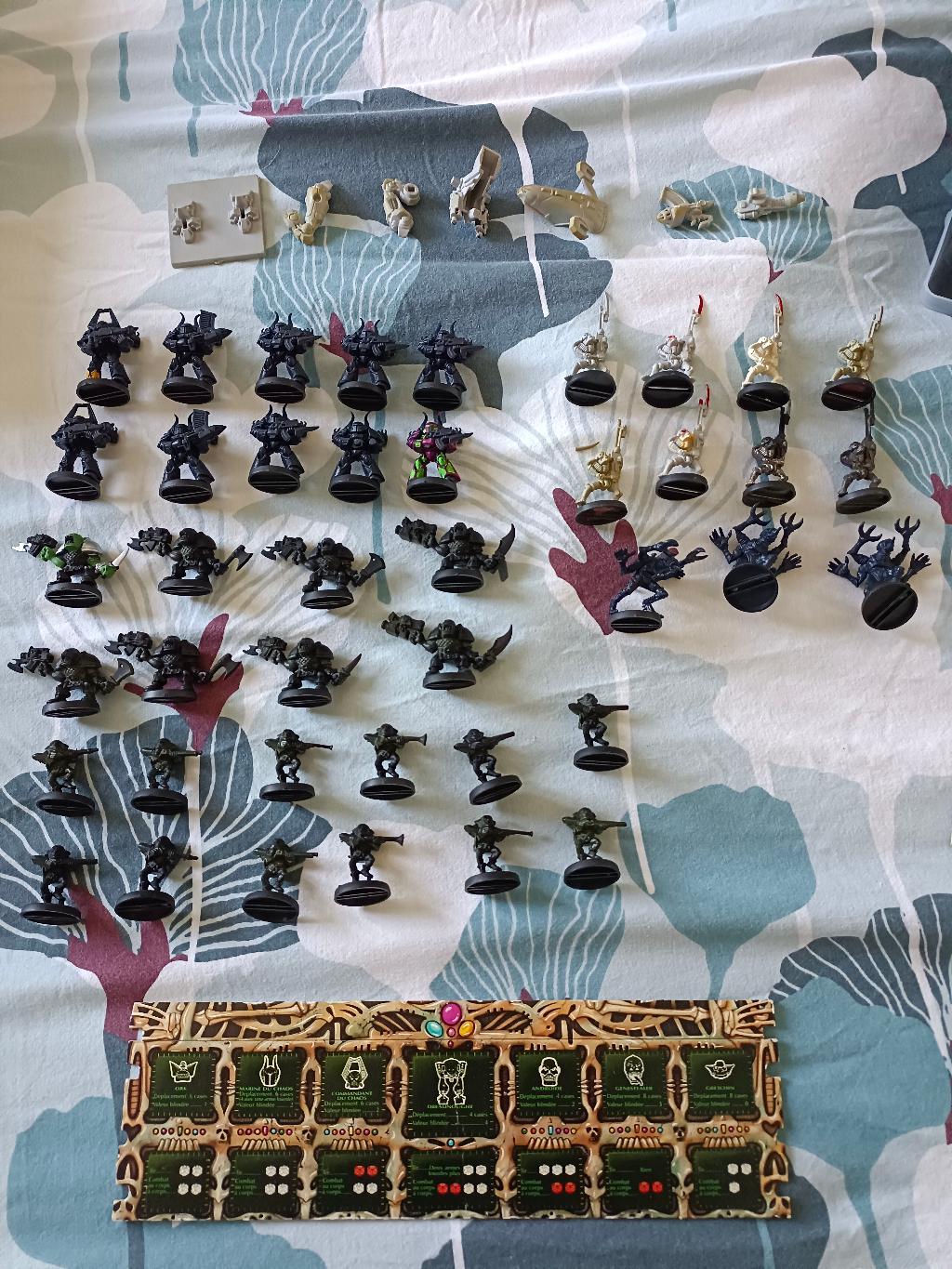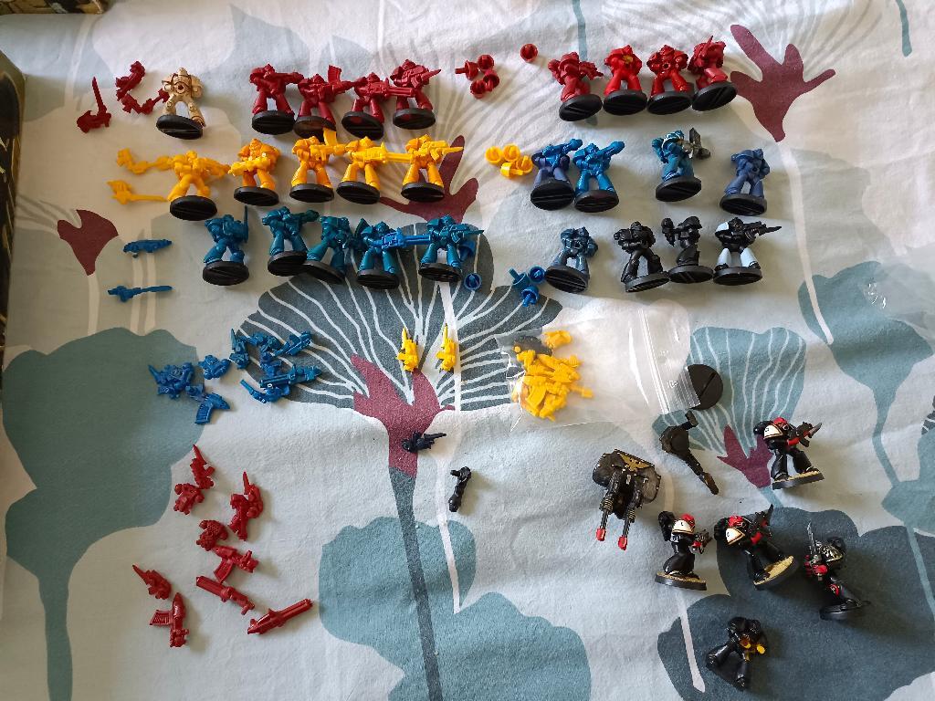 Il y a beaucoup de figurines en rabe que j'ai accumulées au fil des années dans le projet de rajouter une faction Space Marine. Quelques jetons blips/renforts en plus également.