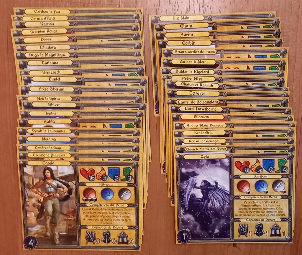 Set de personnages pour descent V1 (voir photo pour la liste). Vendu sans les figurines, juste les fiches de personnages.
