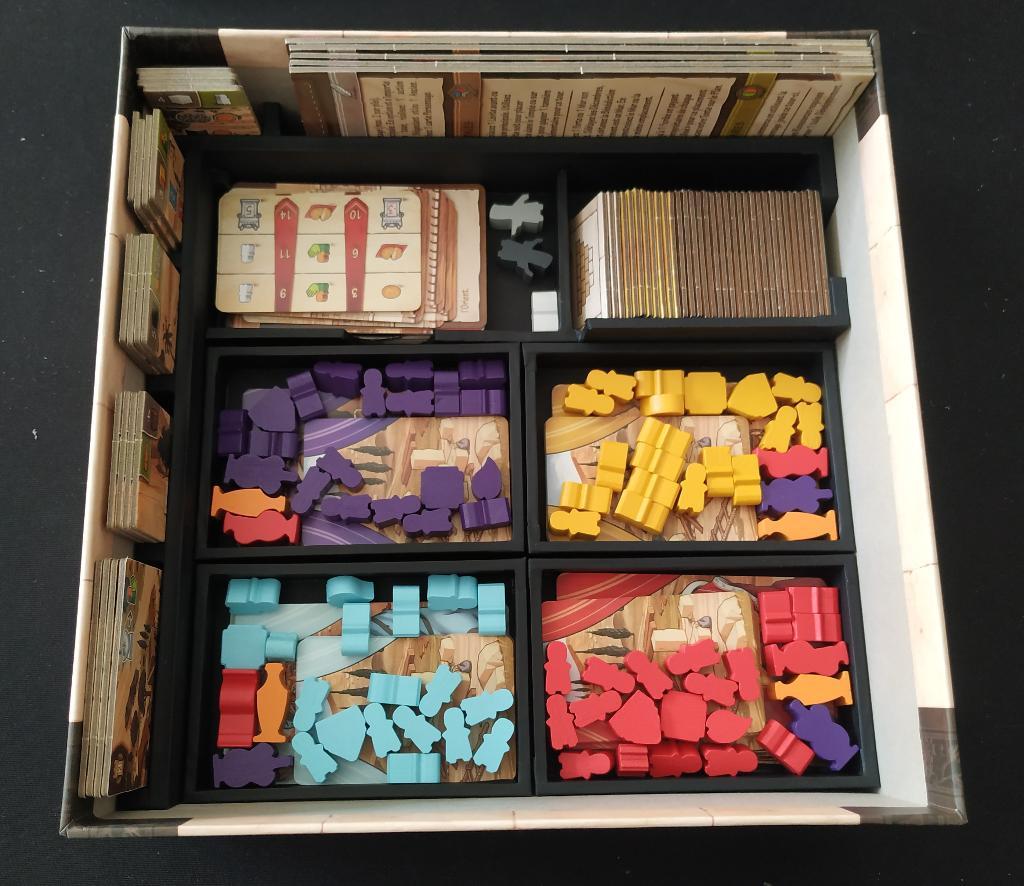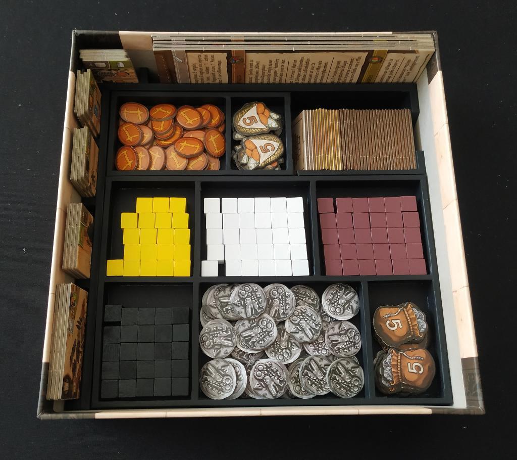 Le jeu comprend les 6 tuiles promo KS et il est fourni avec un insert en carton plume fait maison qui permet le rangement à la verticale.