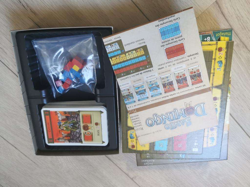 Dans Santo Domingo, les joueurs ont la même main de huit cartes actions. Chaque tour, ils en choisissent une ou deux, les révèlent en même temps et exécute les action dans un ordre fixe.