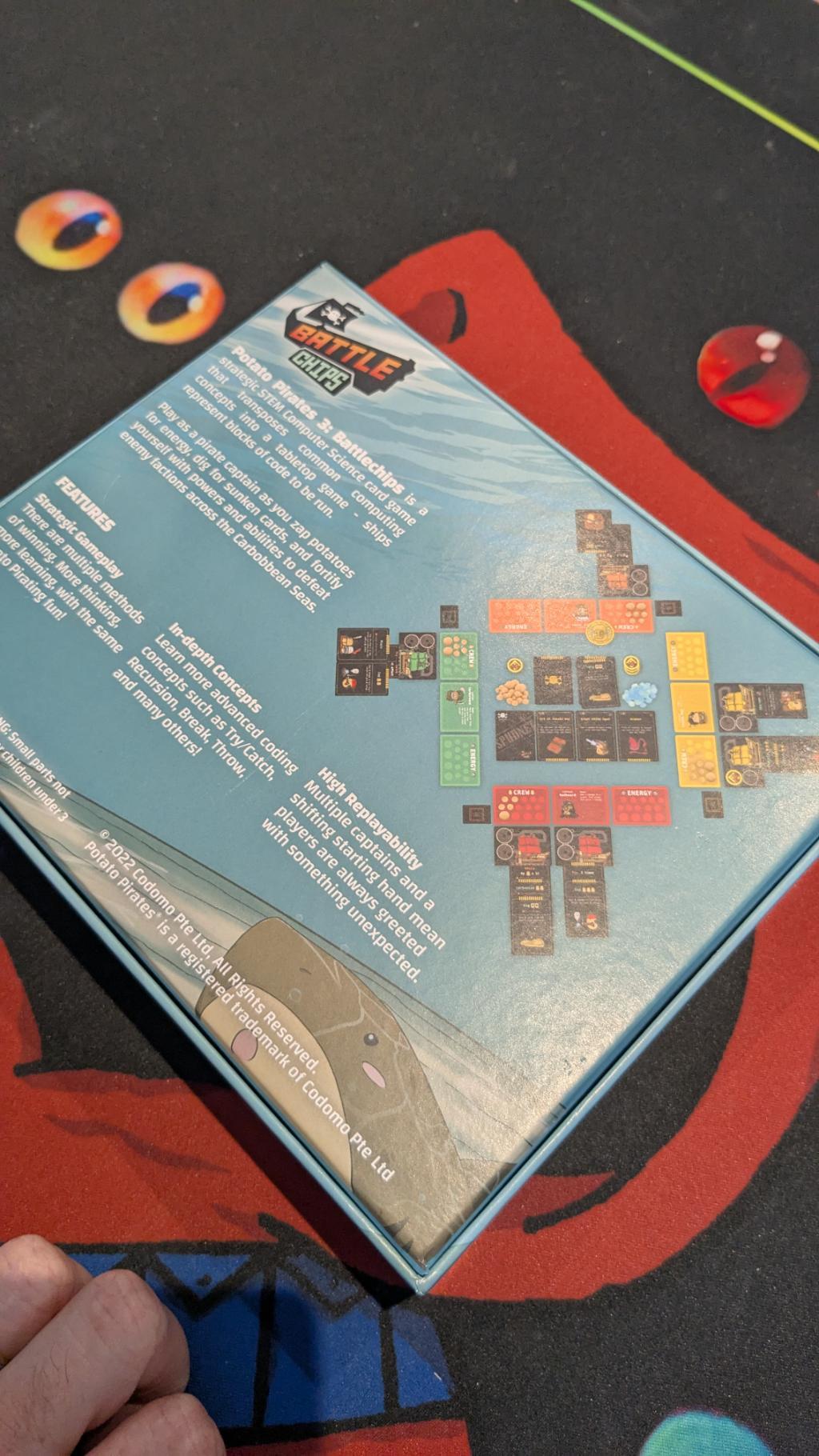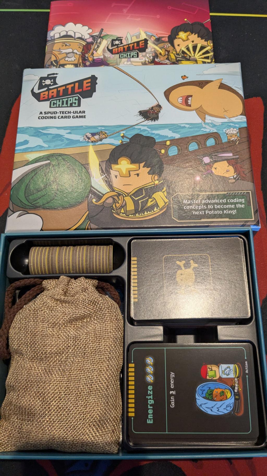 Un jeu orignial, venu de l'étranger, qui propose de mêler codage informatique et bataille entre pirates... patates. Le second degré est au RDV ! Si vous n'êtes pas hermétiques à la langue de Shakespeare (la lecture restant courte), une expérience ludique défrisante s'offre ici à vous ;).