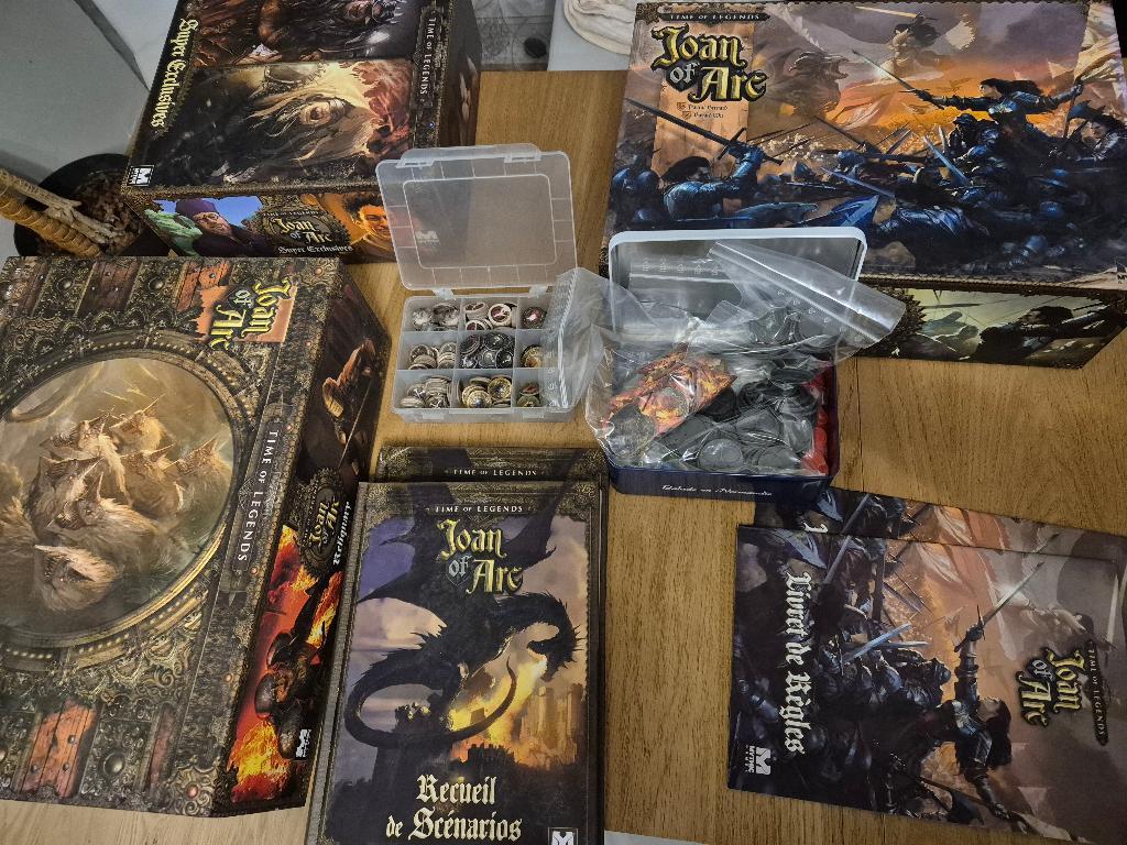 22/10/2025 19:40 | Description | Je vends mon exemplaire de Joan of Arc (multi langues français + anglais), il contient : - Core Box - Reliquary Box - Super Exclusive - Unleash Hell (toujours sous cellophane) - Apocalypse ( toujours sous cellophane) - Legendary Dragon - Village Pack - kit de bannières 3D (plunder banners) - recueil de scénarios français (+ un second exemplaire identique légèrement écorné) - upgrade kit 1.5 Jeu en excellent état, dont certaines boites sont encore neuves, la boite de base a été utilisée une seule fois. Remise en main propre sur le Plessis Robinson (92350), vu le volume (7 grosses boites) il n'est pas raisonnable de prévoir de le récupérer sans voiture. |