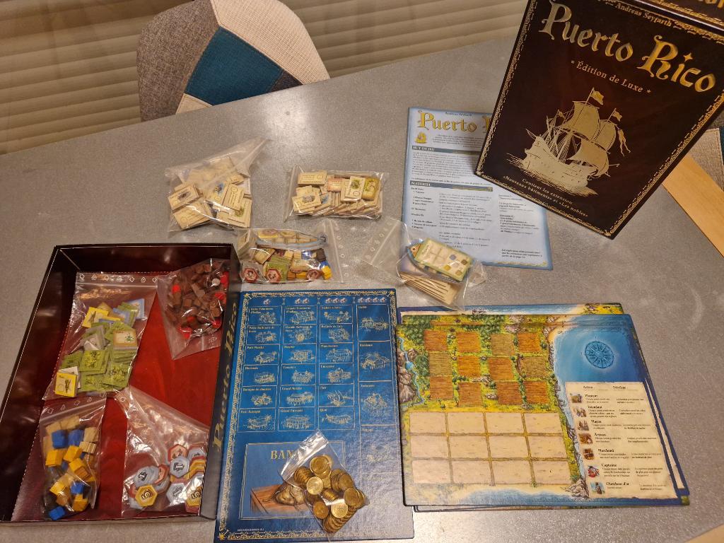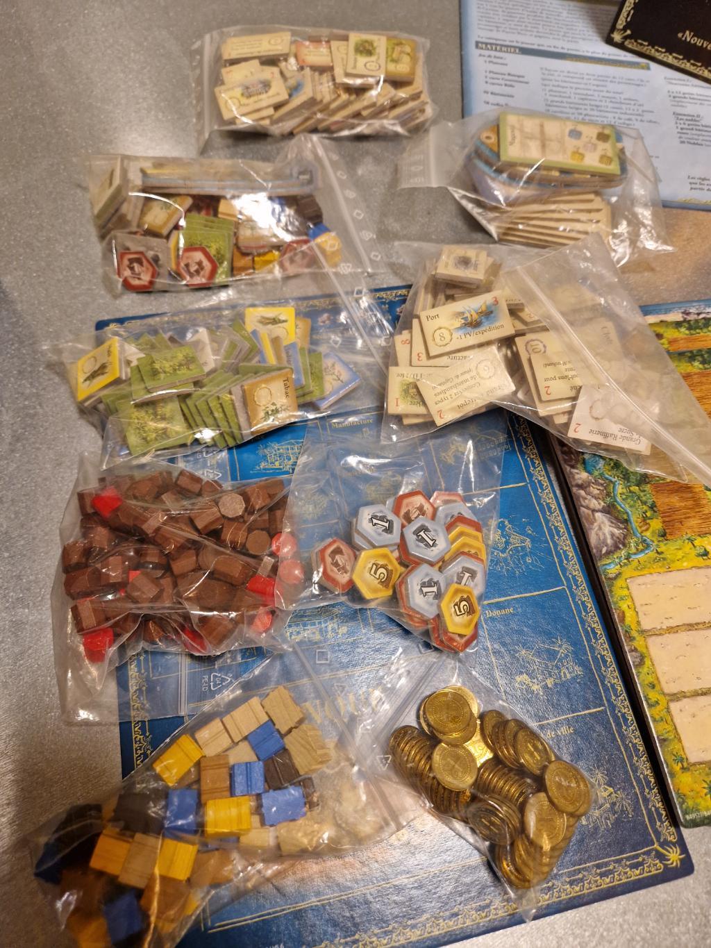 Jeu en VF de luxe, rare, complet et en parfait état : contient les extensions Nouveaux bâtiments + Les nobles + tous les composants deluxe (pièces en métal, carton épais, etc.)