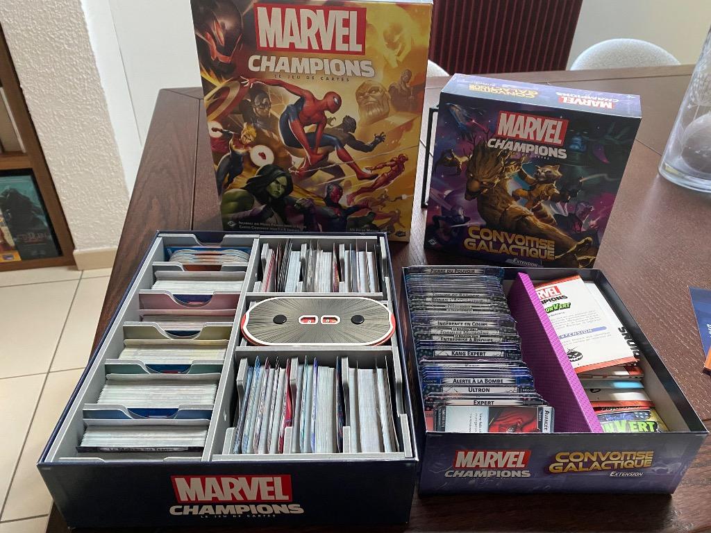 Boite de base + Convoitise Galactique - Kang - Bouffon Vert - Sorcière Rouge - Dr Strange - Captain America - Black Widow - Gamora - Drax - Miss Marvel - Ant Man - Deadpool - Insert Folded Space - Intercalaires faits maison et plastifiés sur base fichier BGG.