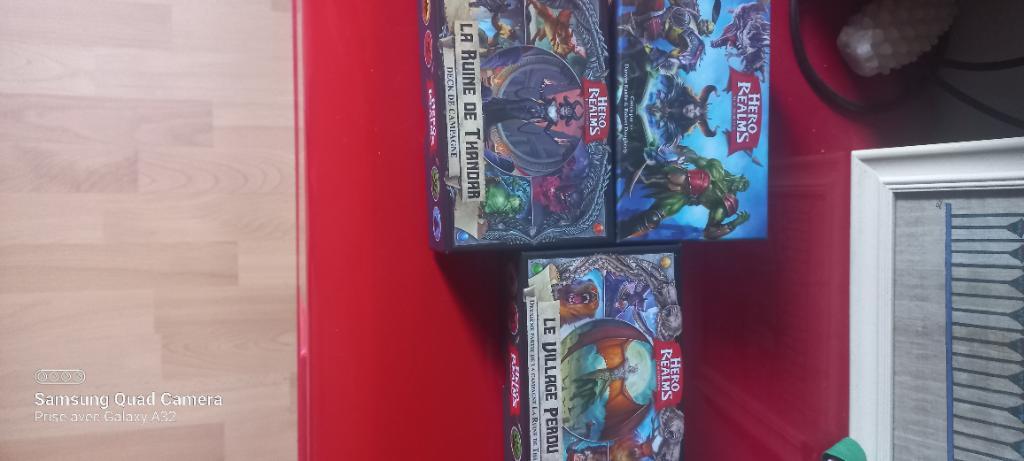 Vend boîte de base +2 extensions(le village perdu qui n est pas déballé, la ruine de thandar)+5 personnages + 2 decks de boss non déballés(liche et dragon)
