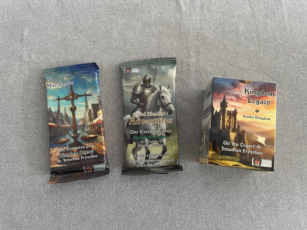 Jeu de base + 2 extensions (non ouvertes), en français et comme neuf.