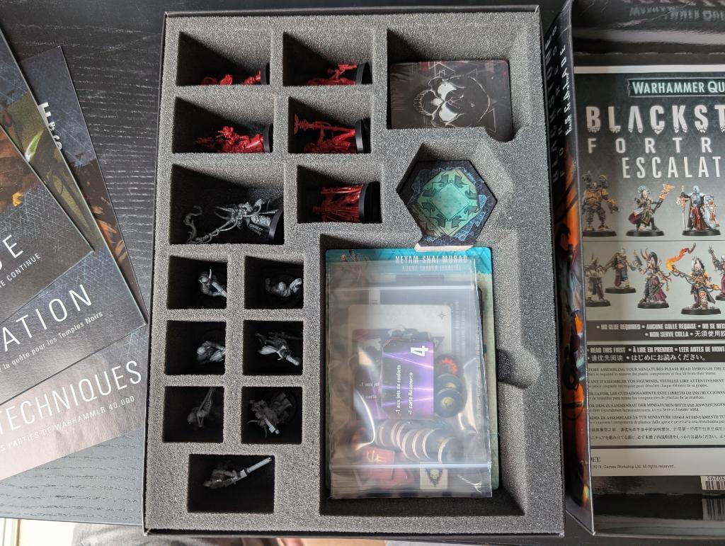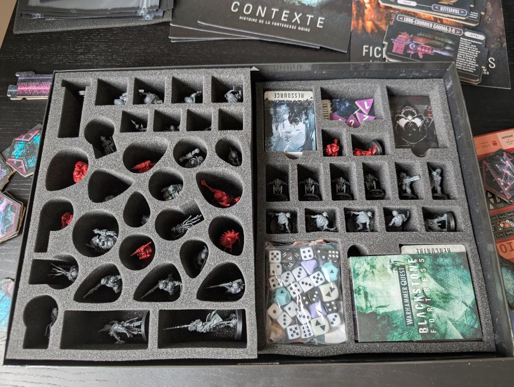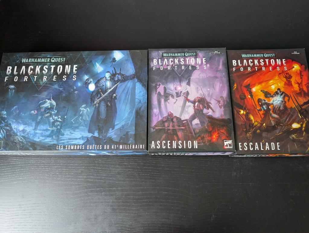 20/09/2025 12:06 | Description | Warhammer Quest Blackstone Fortress 1. Jeu de base (juste déballé) avec Protection et rangement en mousse Feldherr. 2. Extension Escalation (juste déballé, cartes encore sous cello) avec Protection et rangement en mousse Feldherr. 3. Extension Ascension (juste déballé, non dépunché, cartes sous cello et figurines en grappes) |