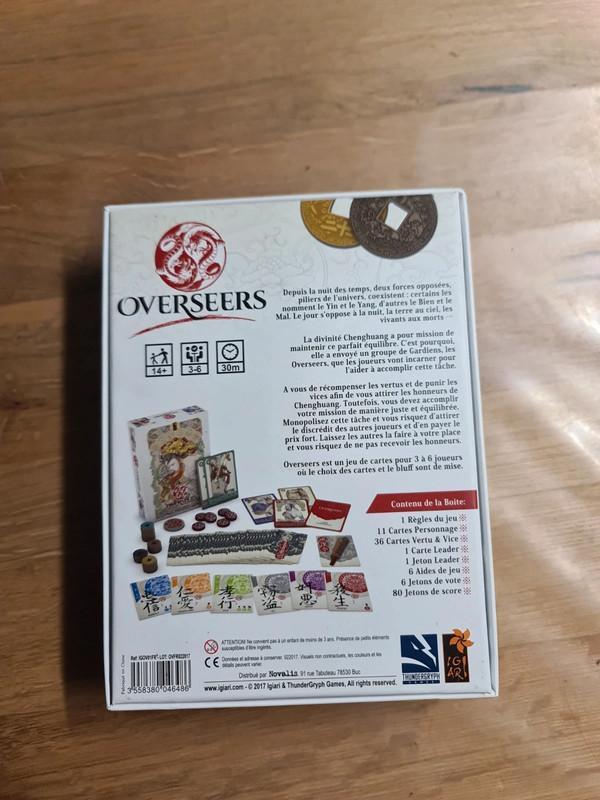 Proche du neuf jeu de société Overseers des éditions Igiari, complet, maison non fumeur
