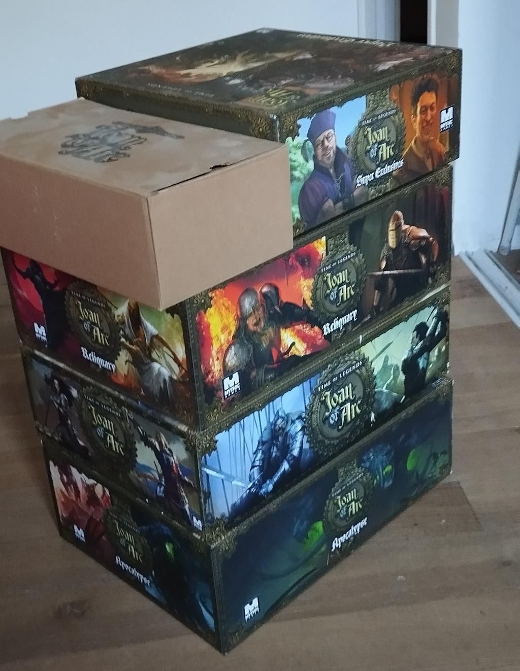 Il y a du matos en plus, et du matos manquant (les figurines listées ci-dessus) parce que j'ai coécrit des scénarios pour le jeu (notamment la campagne et les 2 scénarios exclusifs du MYTHIC DAY joints) et nous avions dans ce cadre reçu du matériel, et que nous organisions le MYTHIC DAY et les figurines de Maggog et Mehmet II ont été offertes durant l'événement.