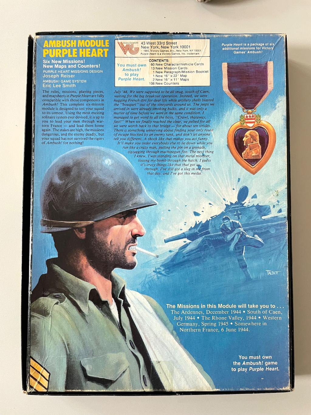 Extension pour Ambush!, jeu en solitaire. Attention : boite incomplète : il manque les 108 pions (trouvables sur BGG ou sur le Net et imprimable) ainsi que 2 maps (idem) et le Mission Booklet (idem). Dessus de boite fatiguée. Envoi soigné.