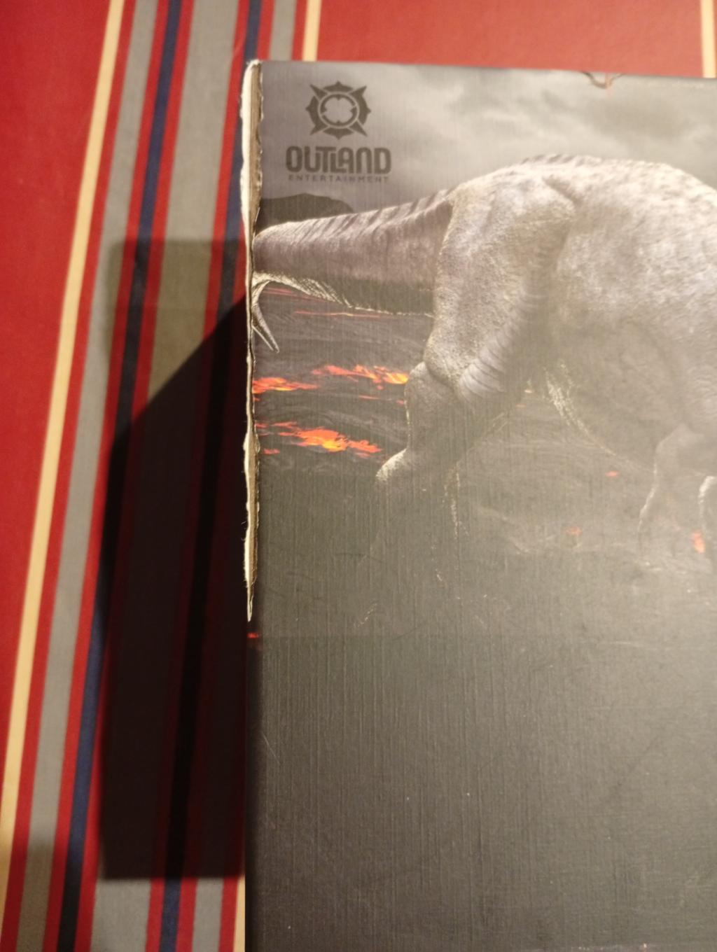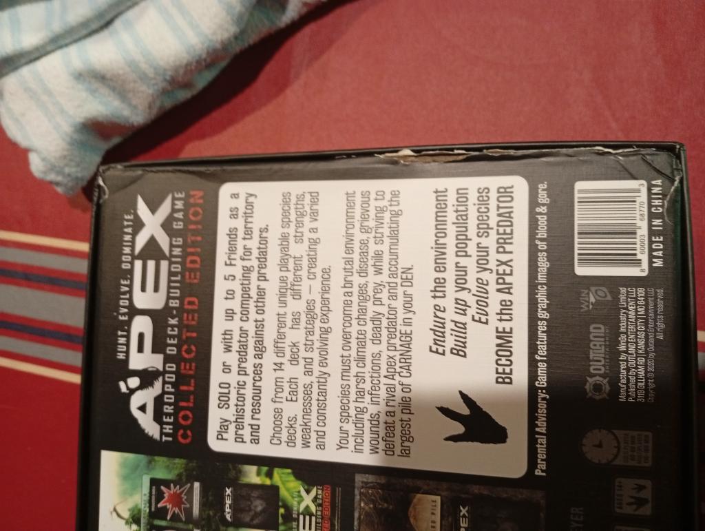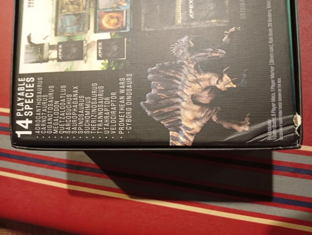 La boîte est abimée, la traversée de l'atlantique n'a pas été sans heurt. Le matériel est en parfait état, le jeu n'ayant jamais été joué. La moitié des cartes est encore emballée.