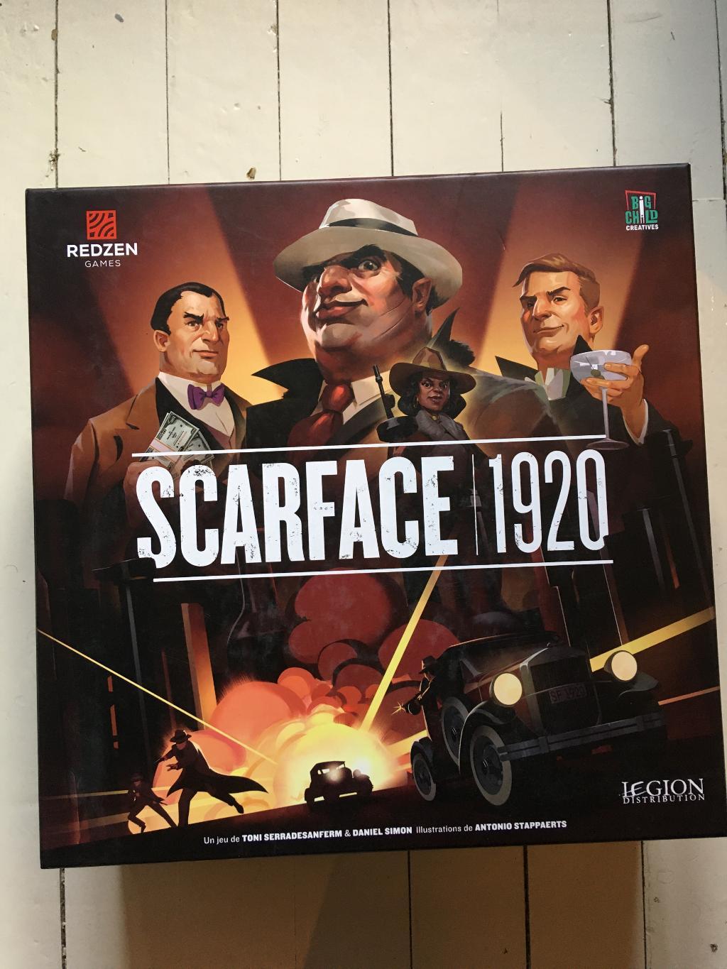 Je me sépare à contrecœur de mon exemplaire de Scarface 1920. Le jeu a été joué trois fois, les cartes étaient sleevées et sont dans un excellent état.