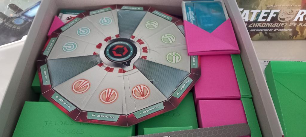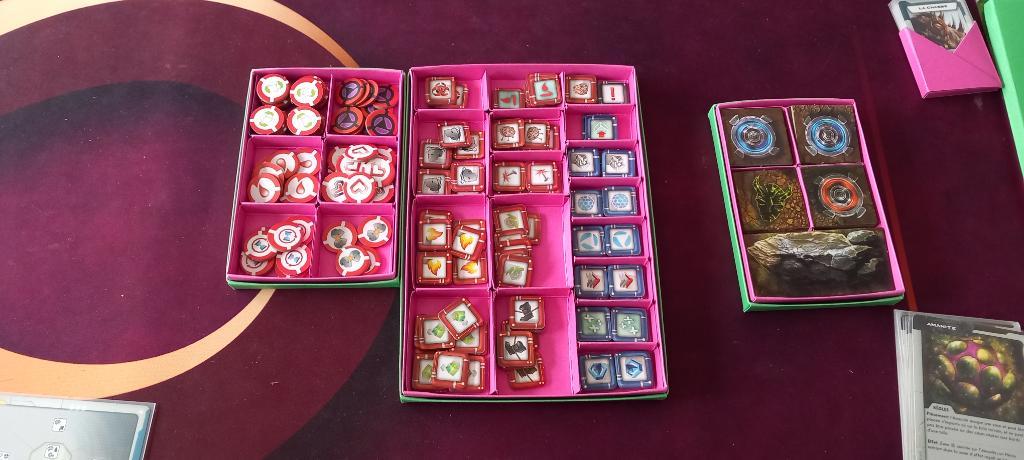 J'ai remplacé le plastique de base pour les figurines par des boîtes en carton en origami pour ranger tout le contenu du jeu.