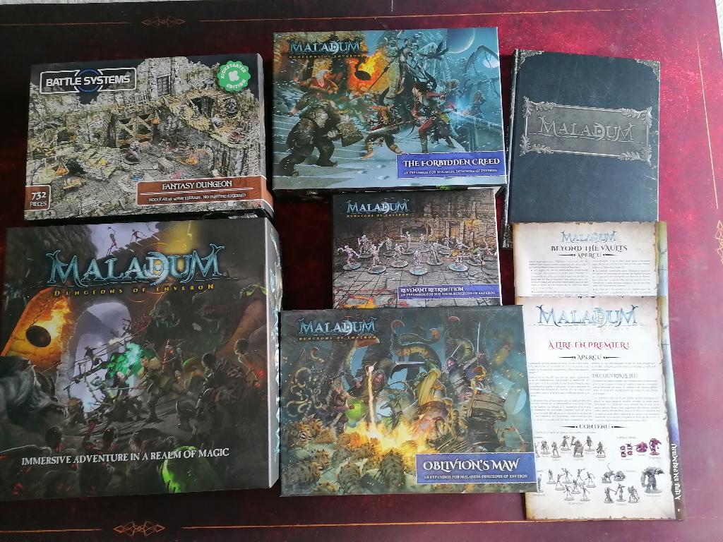 Maladum Combined Pledge en français boite de base version kickstarter, livre deluxe + tous les bonus intégrés + Quests of Mesa Bundle ( Oblivion's Maw + The Forbidden Creed) + Revenant Retribution Expansion + Locations of Enveron Bundle