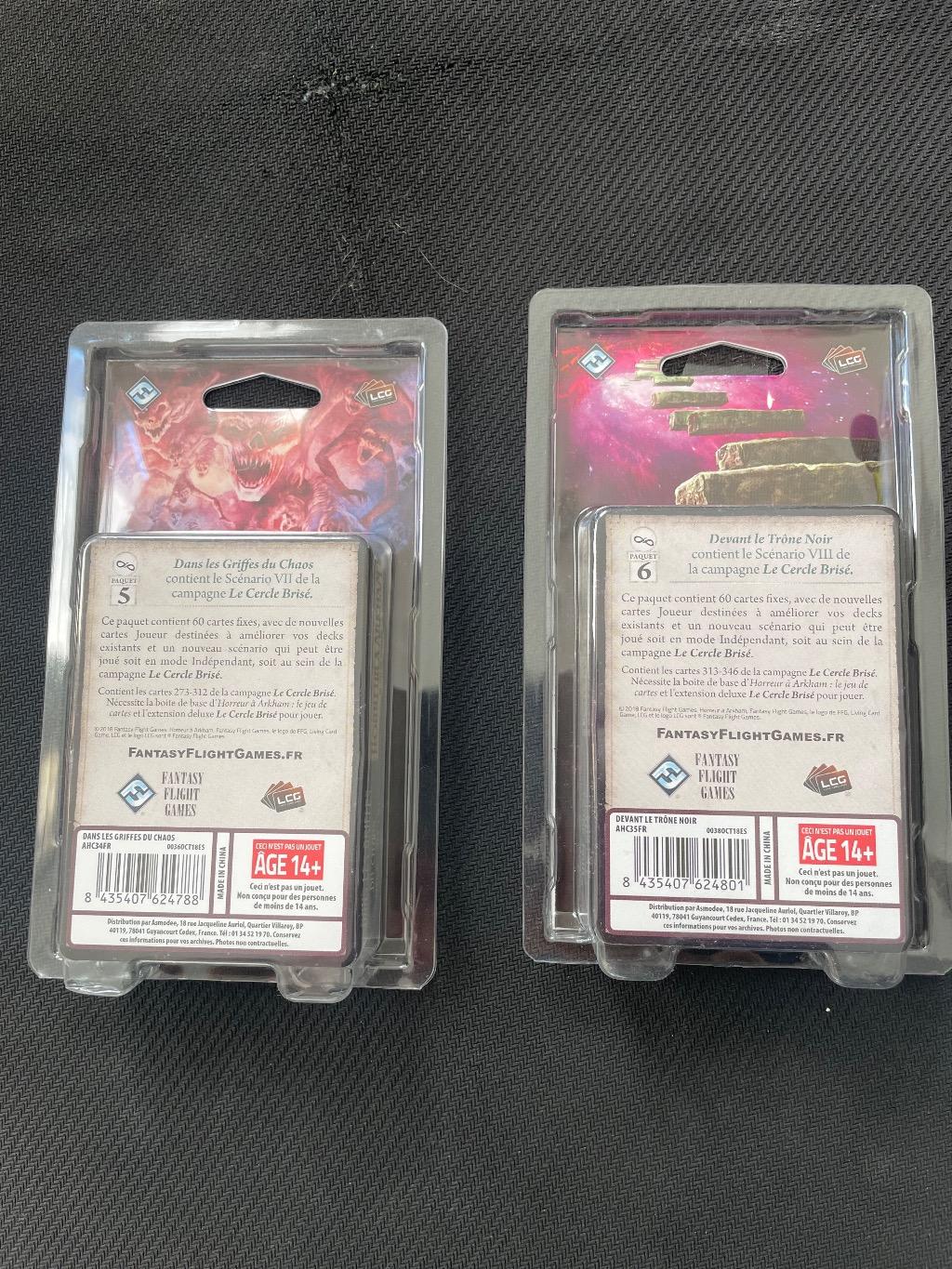 Bonjour je met en vente ce lot de 2 paquets de carte pour le jeux horreur à arkham