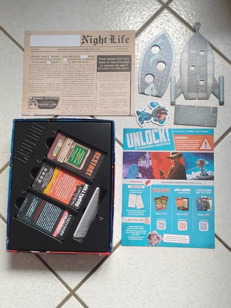 05/10/2025 10:37 | Description | 3 enquêtes : dans un jeu vidéo, dans Hollywood et dans l'espace. Jeu en très bon état : neuf avant notre usage, sans aucun élément plié, griffonné ou détruit. Jeu complet : les cartes sont même classés dans l'ordre. Un échange est également possible contre Unlock 9 Legendary, Unlock 12 Supernatural et Unlock 13 Risky. |