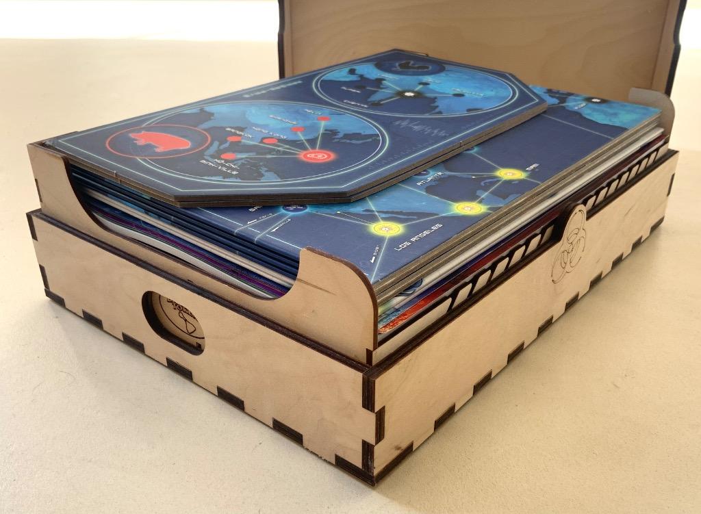 - Le « Pandemic Game Crate » de chez Broken Token - (https://thebrokentoken.com/en-fr/products/biohazard-containment-unit?srsltid=AfmBOoo0ko9-CFNd2qxlI_oi7cseqZ9qYzXkcWFtAbvLtGEyr7C4_qI_ )