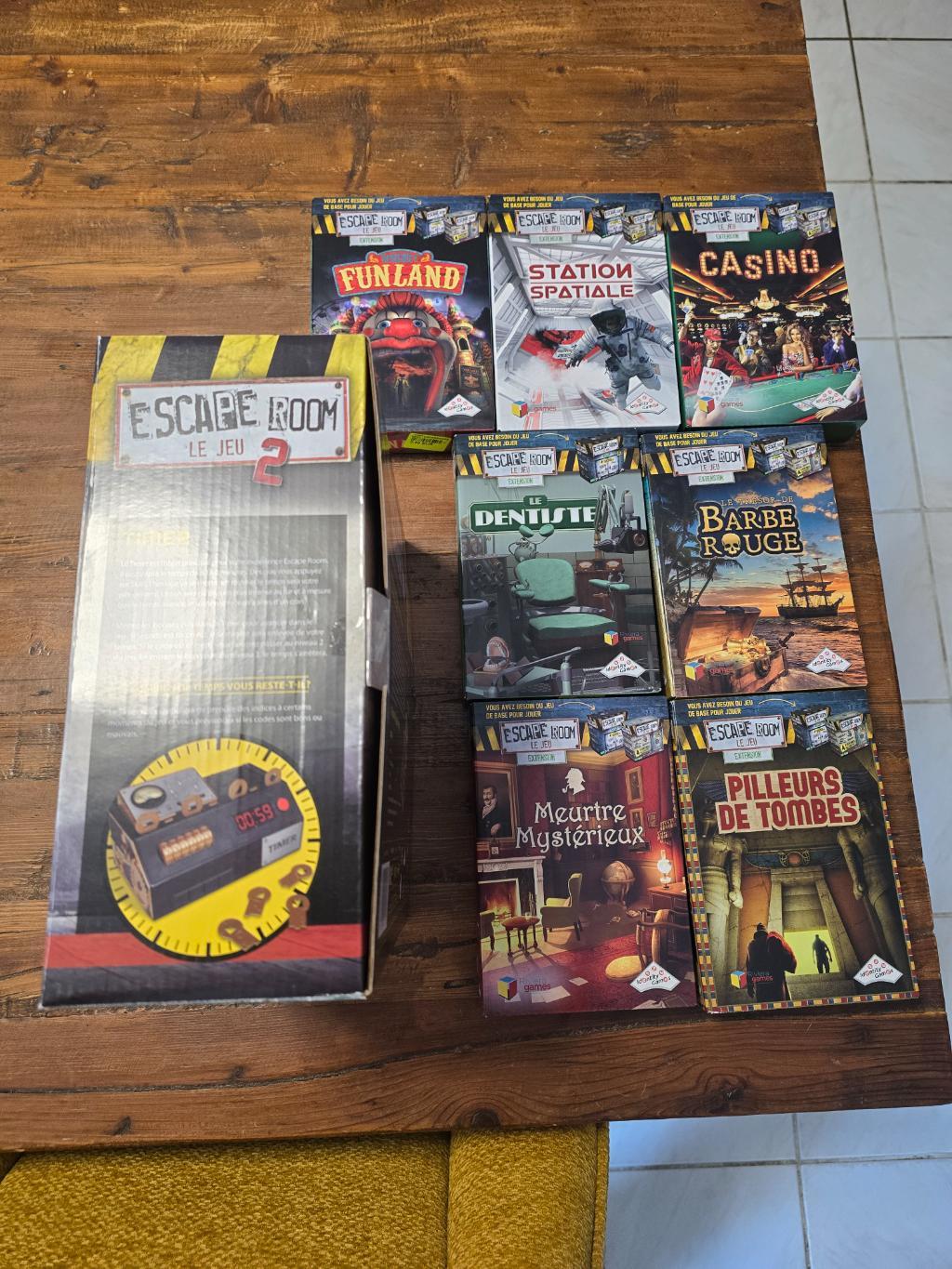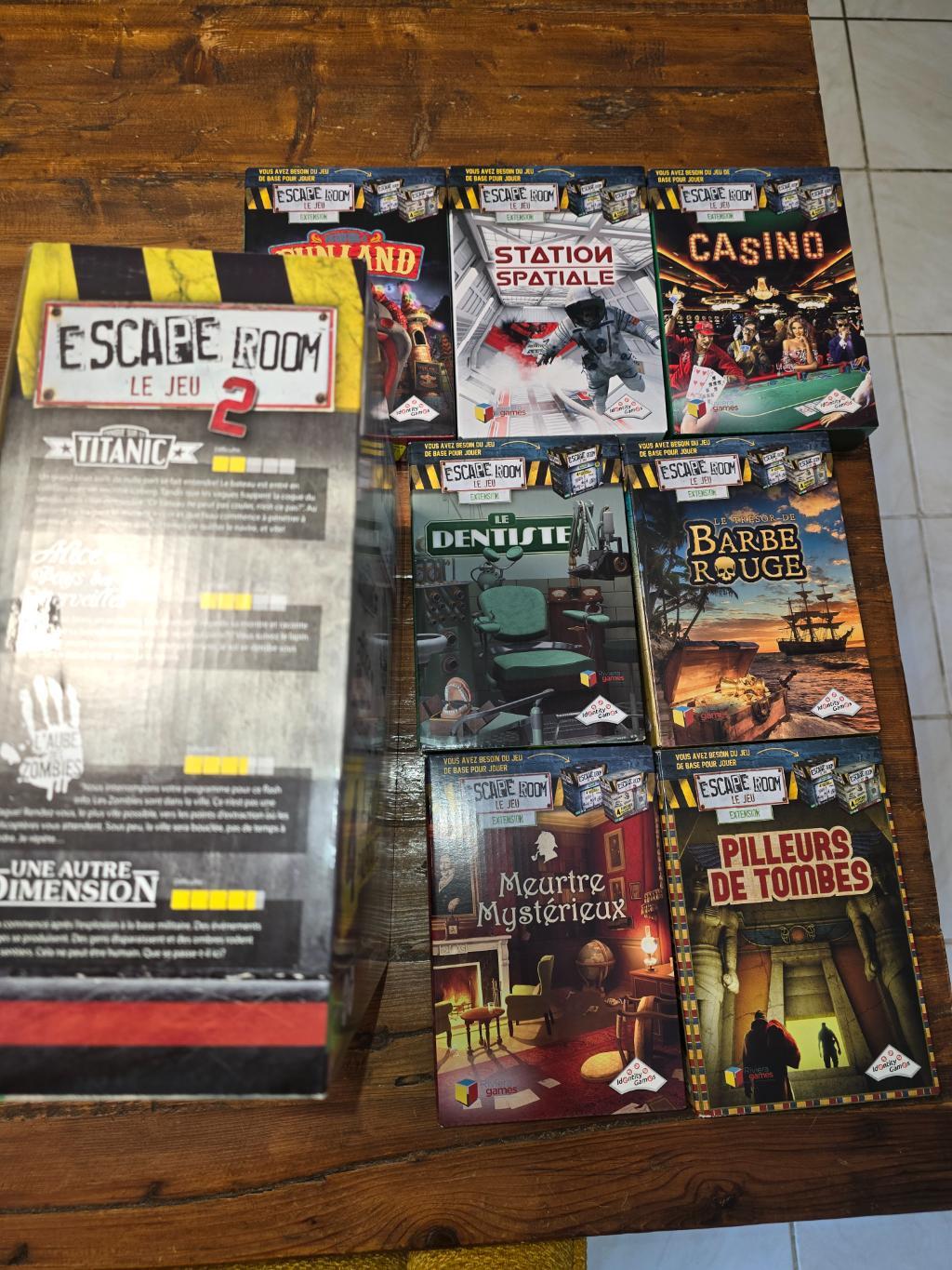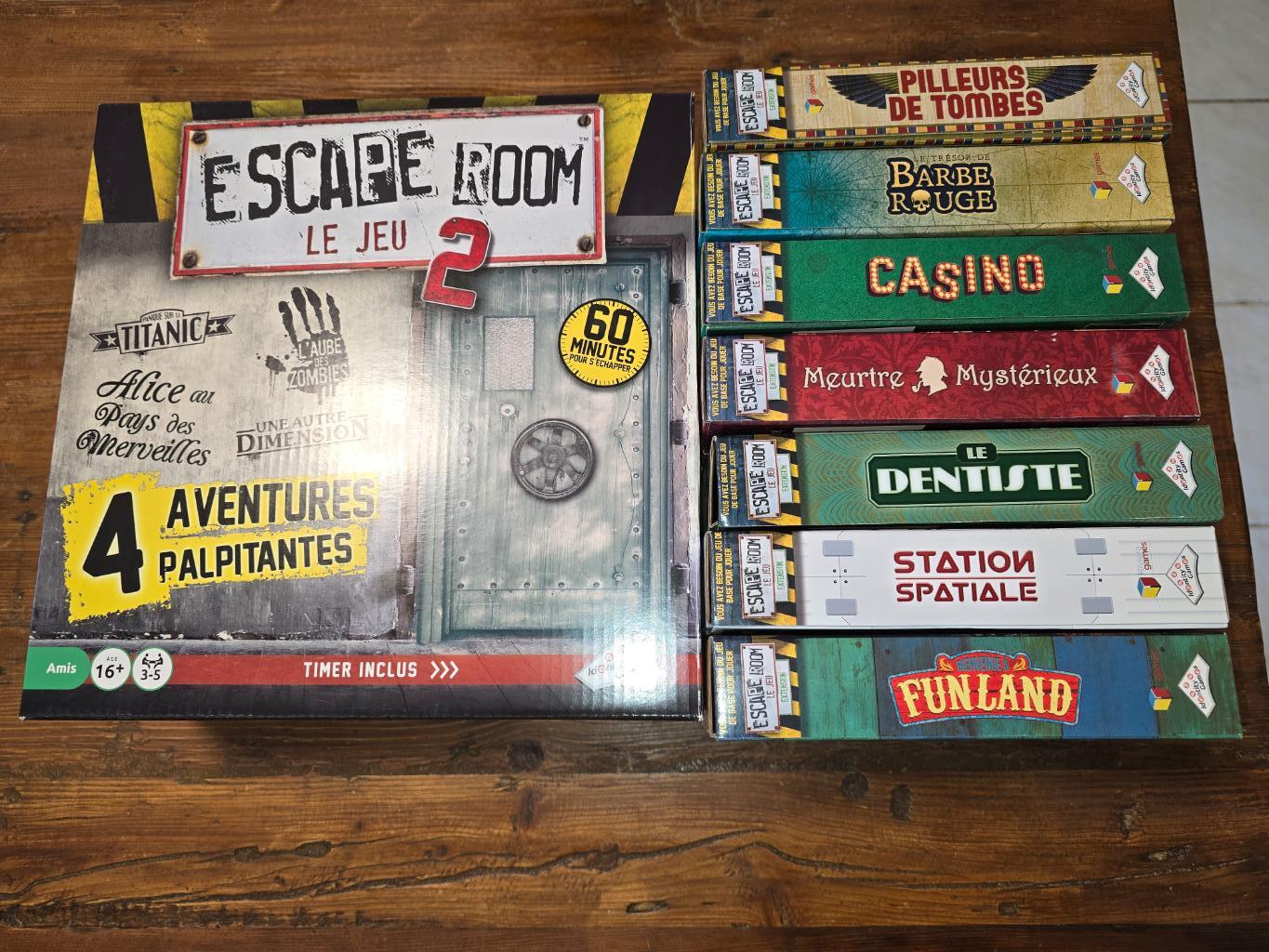 Vends le jeu Escape Room 2 (jeu de base), accompagné de ses sept extensions listées ci-dessous.