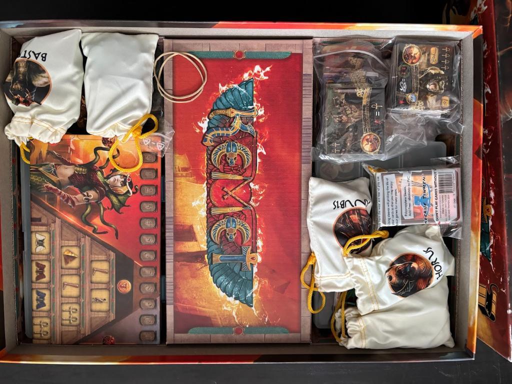 Jeu de base plus Extension Ta-Seti plus Extension Seth plus tuiles promo BGG + sacs en tisssus + crossover cyclades