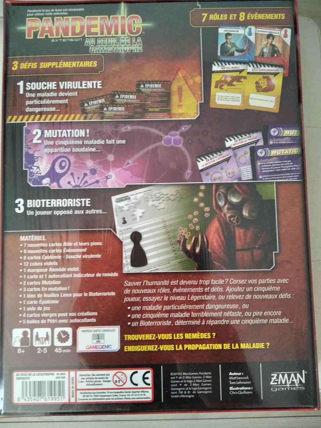 20/10/2025 11:13 | Description | L'extension Au Seuil de la Catastrophe introduit un 5e joueur, six nouveaux rôles, huit nouveaux événements et trois défis. Votre travail contre la maladie n’est pas encore terminé. Remise en main propre privilégiée. Envoi possible par Mondial Relay pour un coût supplémentaire de 6,99 euros. |