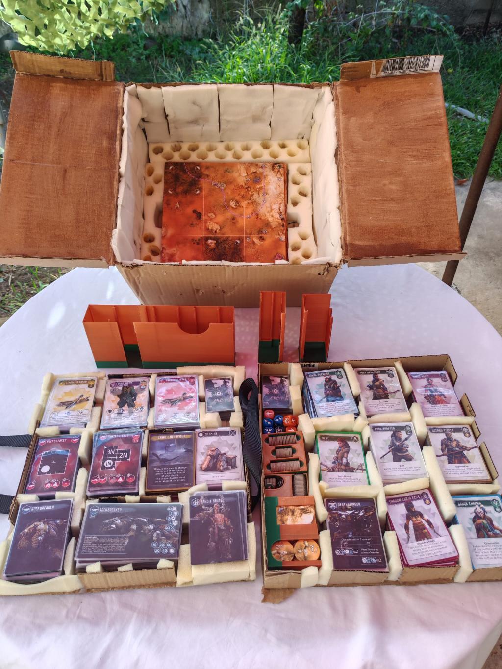 Des inserts ont été fait en 3d et une boîte de transport confectionnée. Oui elle est vachement 🐮 moche mais qu'est ce que ça économise du temps d'installation ! Tout ce met en place en ≈ 10 min voir moins quand on sait faire.