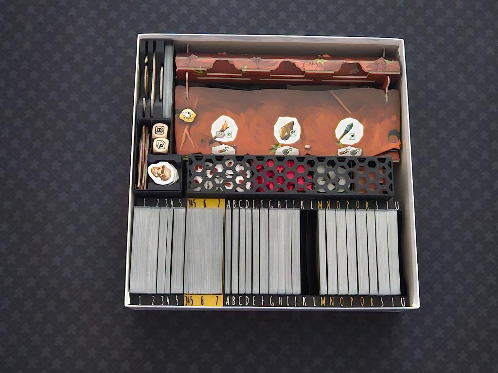Comme neuf, vendu intégralement sleevé et avec insert 3D permettant de rapidement mettre en place et ranger le jeu (tout tient dans la boîte de base)