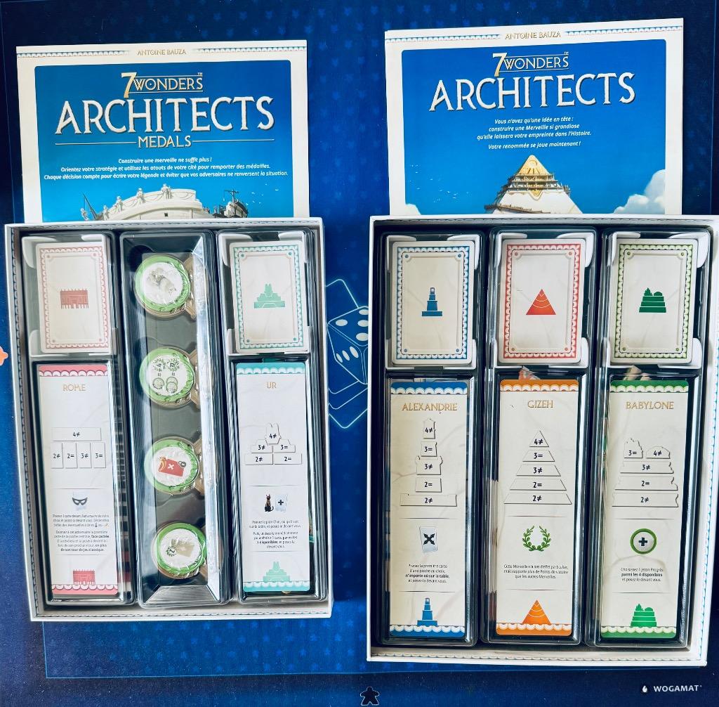 Lot comprenant 7 wonders architects + Medals + Goodie "figurine chat"