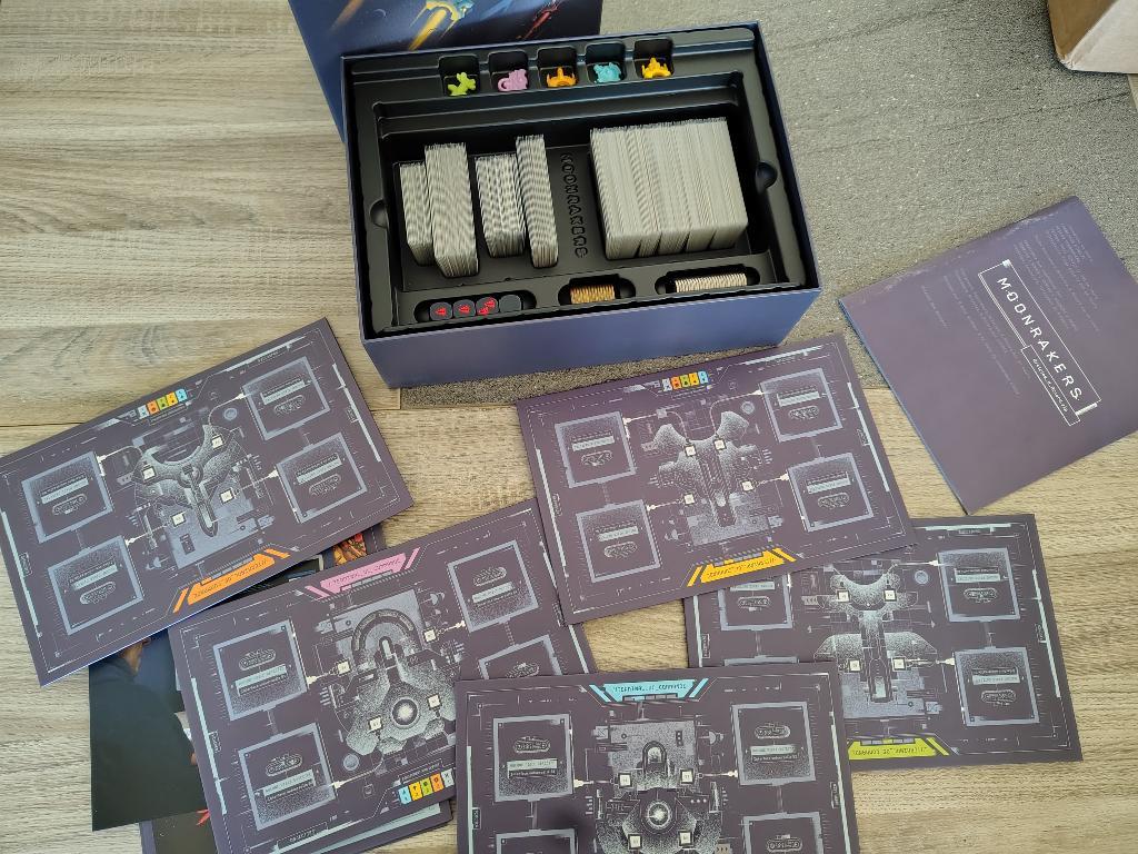 La boîte est un peu abîmé sur les coins suite a un petit accident technique (voir les photos), mais le matos a l'intérieur est en excellent état. Il comprend les pièces en metal et les cartes holographique.