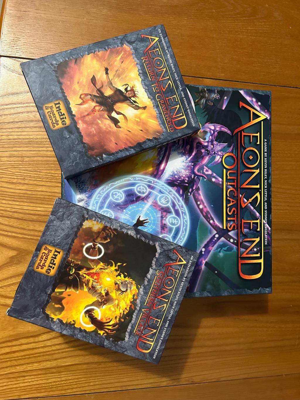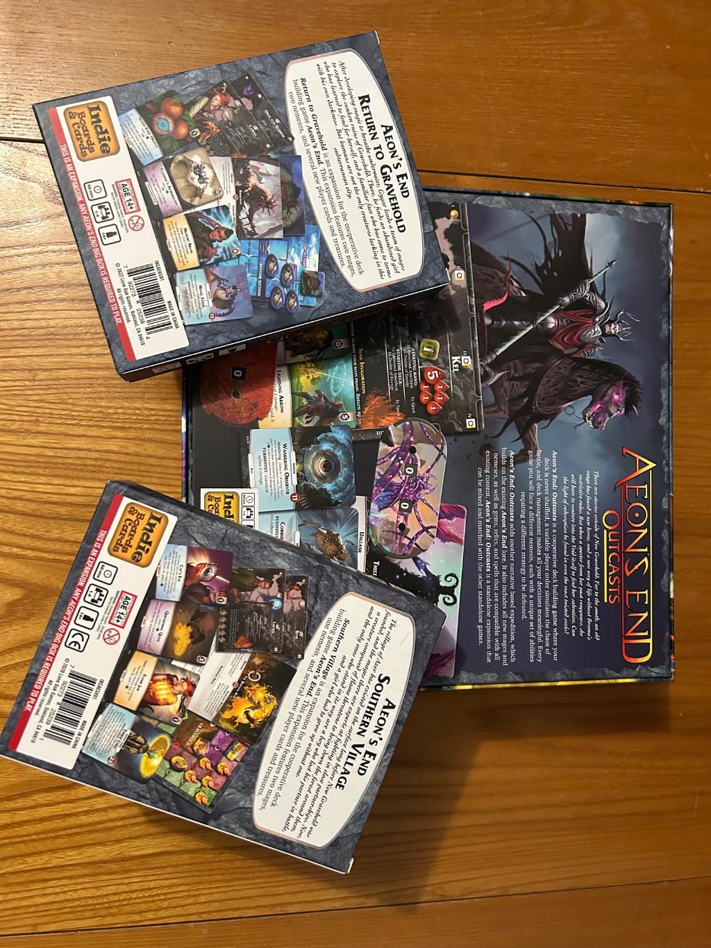 Aeon’s End VO avec ses 2 extensions Southern Village VO et Return to Gravehold VO.
