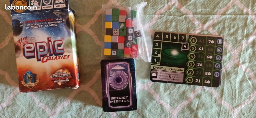 Bonjour, je vend mon jeu Epic Tiny Galaxies. Il tiens dans la poche. Il a voyager et la boîte présente des traces d'usure mais les éléments de jeux sont en très bon état et le jeu est complet.