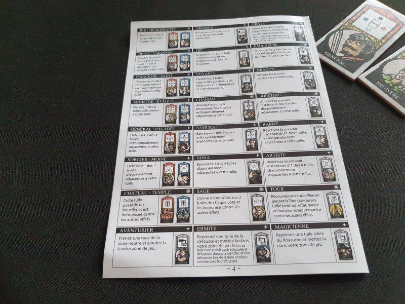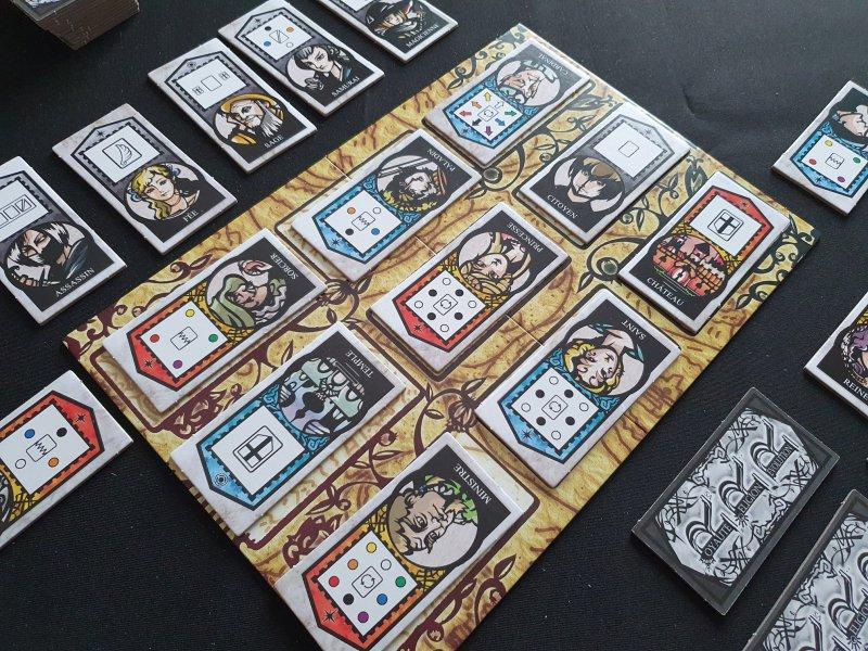 Chacun des deux joueurs incarne le leader de la Royauté ou celui de la Religion, et devra gagner le plus d’influence grâce à des personnages représentés par des tuiles. Ils placeront ceux-ci sur un plateau de 3 par 3 représentant le Royaume, et la personne qui aura le plus d’alliés en jeu lorsque le plateau sera intégralement rempli remportera la partie.
