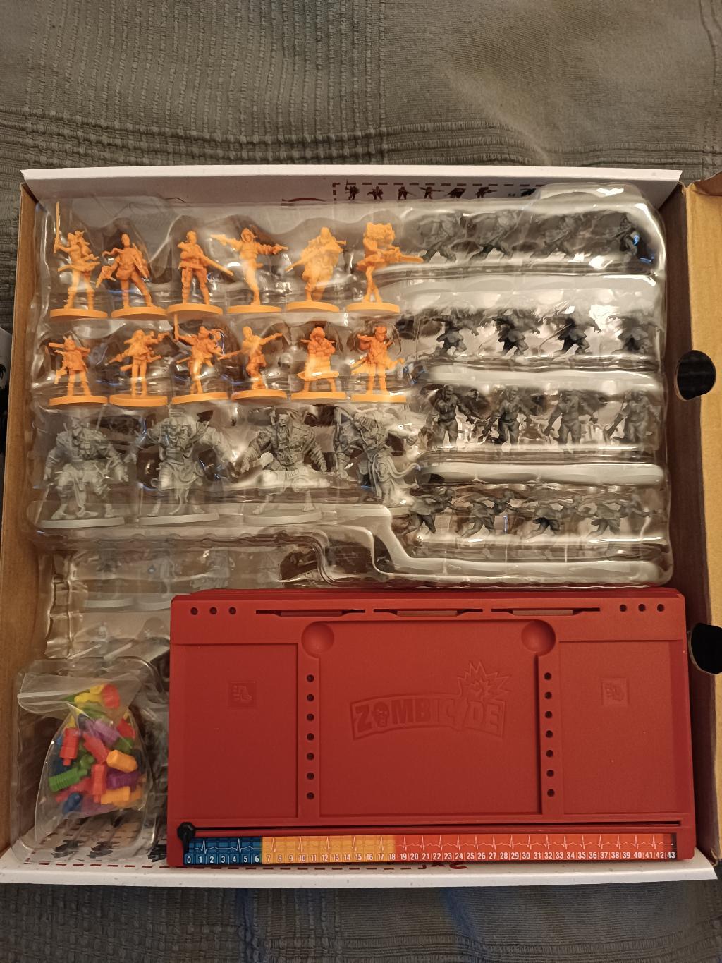 Zombicide est un jeu de plateau ayant pour thème la survie dans un monde infecté de zombies. Après avoir sélectionné un scénario (officiel, non officiel ou de sa création), chaque joueur contrôle de un (jeu à six joueurs) à quatre (jeu en solo) survivants, des humains pris au piège dans une ville infestée de zombies. Chaque personnage a des capacités spéciales pouvant être activées au cours de la partie. Plus le joueur débloque des capacités spéciales, plus de zombies arrivent sur le plateau de jeu.