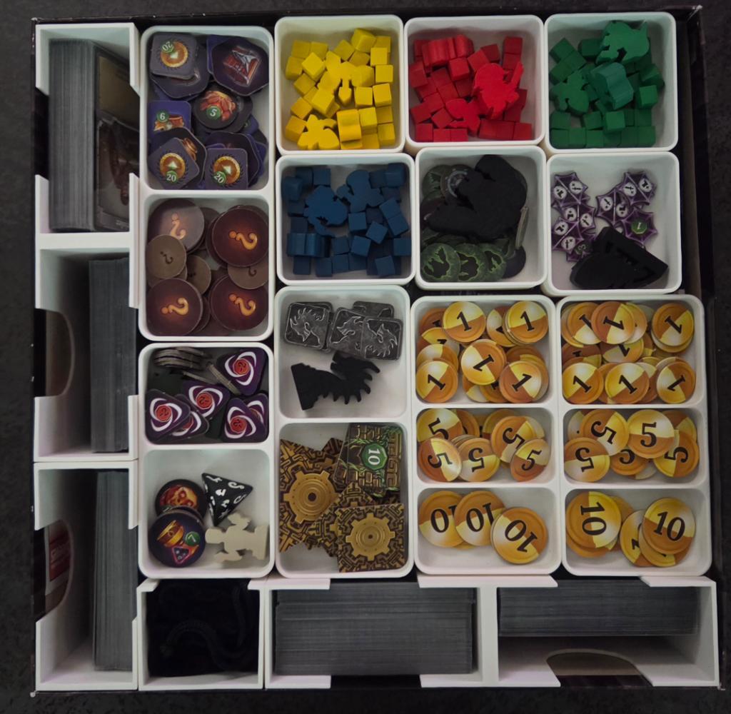 Le tout est rangé dans la boite de base du jeu (qui a bien vécu, voir photo) dans un insert 3D fourni.