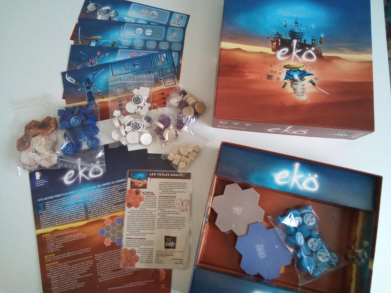 Jeu de base plus les tuiles supplémentaires et le règles plastifiées.