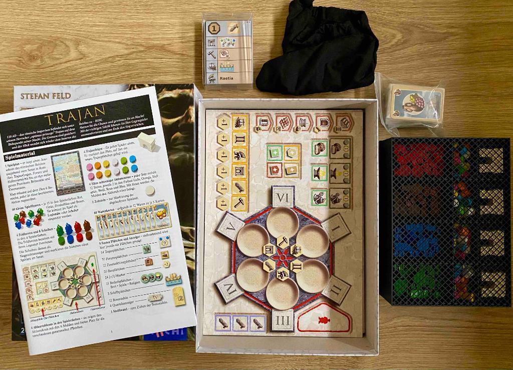 Bonjour, je vends le jeu de société Trajan en version française. Le jeu est complet et en excellent état. Un insert 3D permet de faciliter la mise en place et le rangement. Les cartes du mode solo (non officiel) ont été imprimées et protégées.