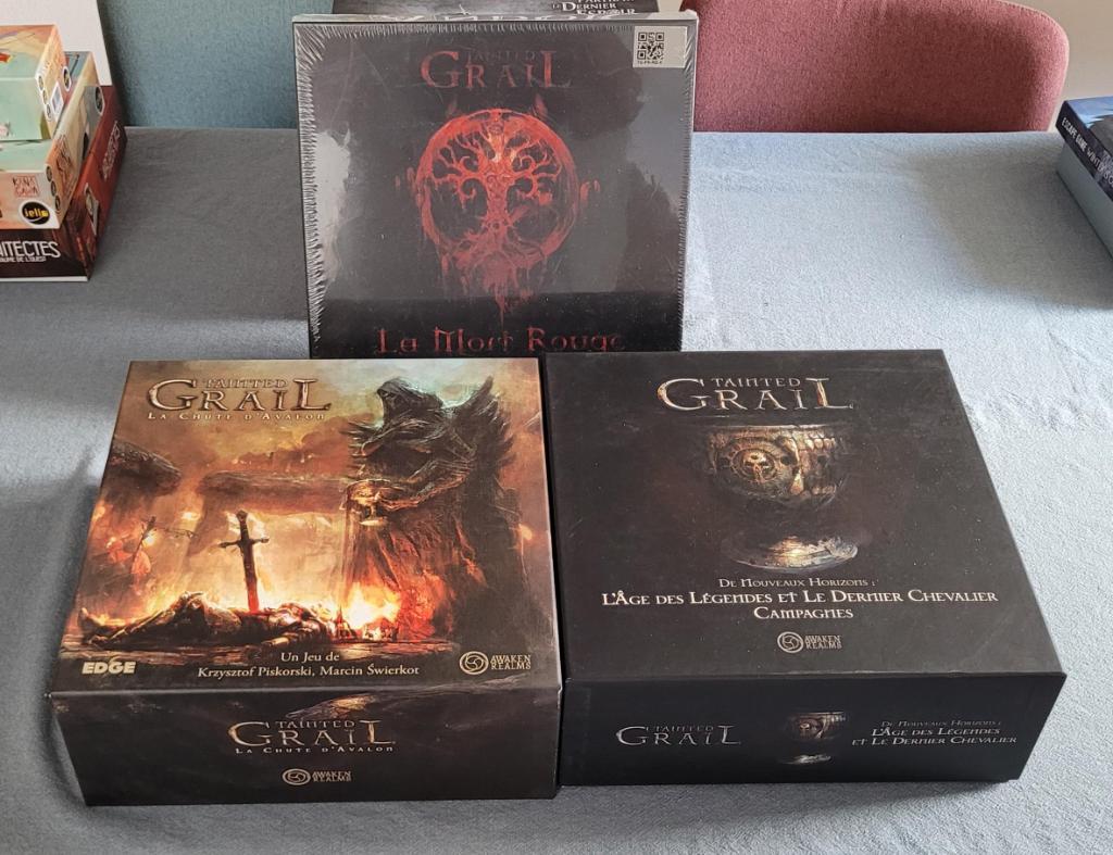 Jeu Tainted Grail + extensions "La mort rouge" et "L'âge des légendes et le dernier chevalier". Jeu en très bon état dans l'ensemble :