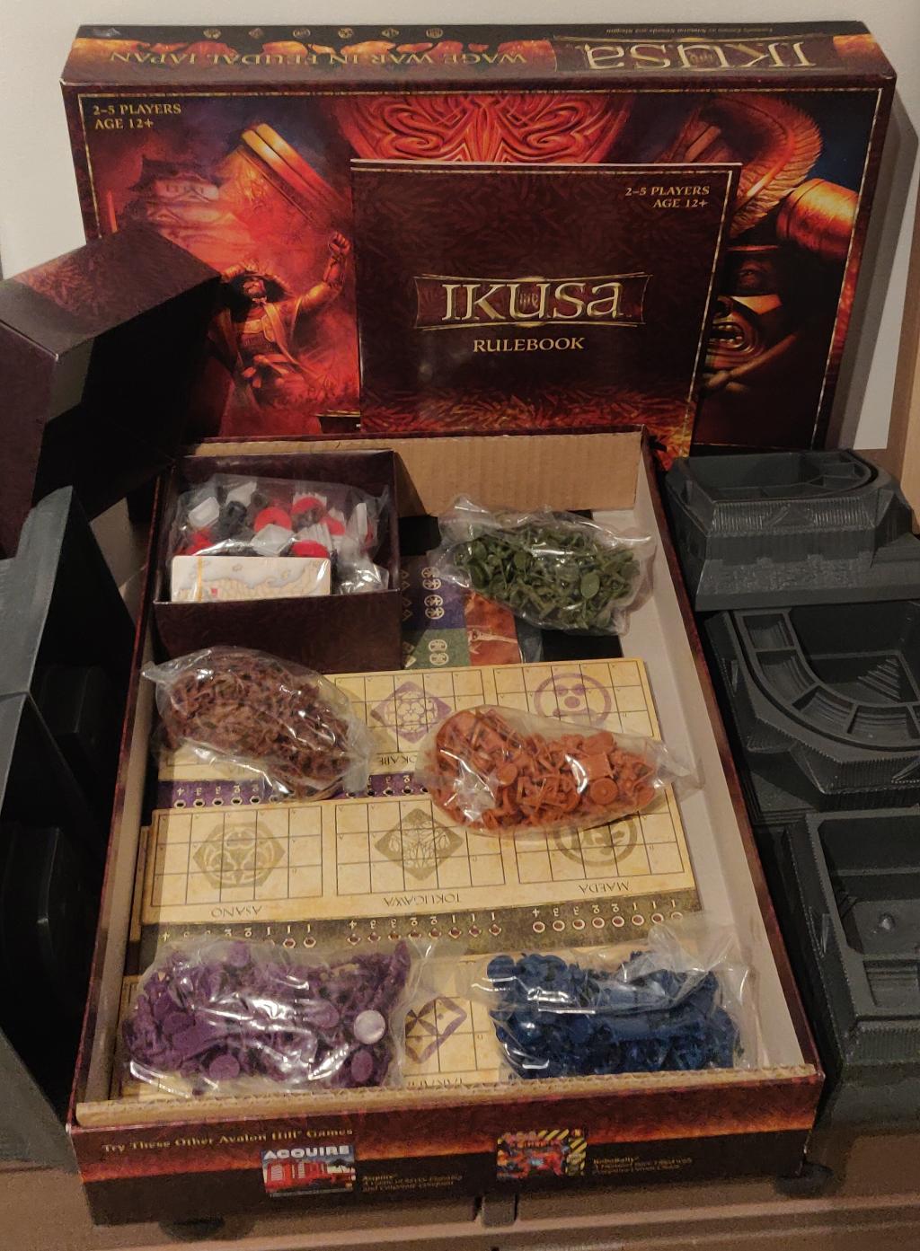 Le jeu est en excellent état, il n'a jamais servi, même si la boîte à quelques légères traces d'usure. Les règles sont en anglais, mais on trouve une traduction française sur boardgamegeek.