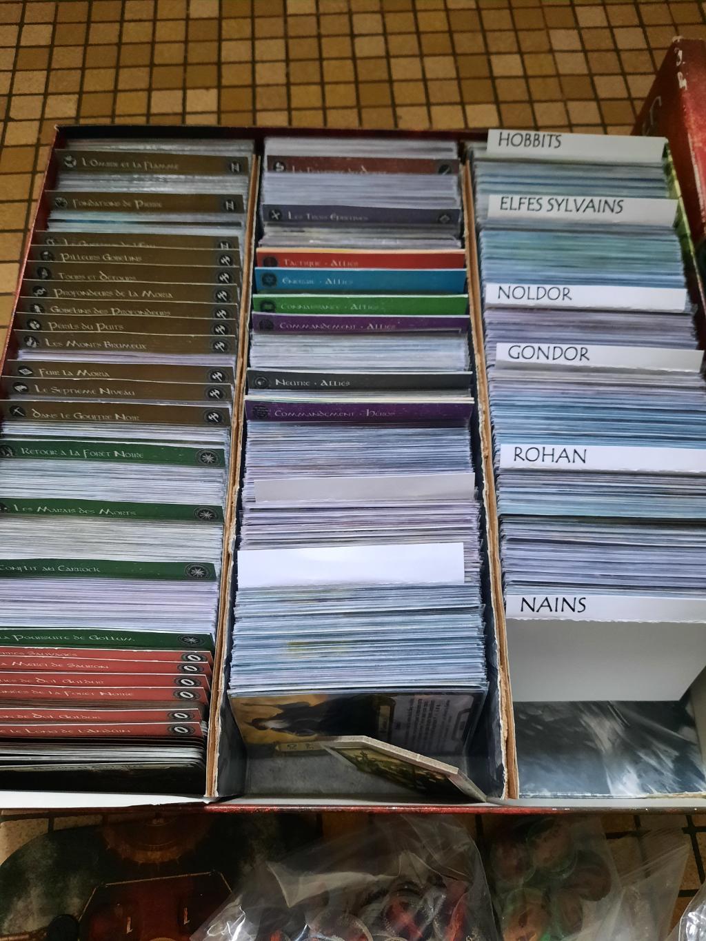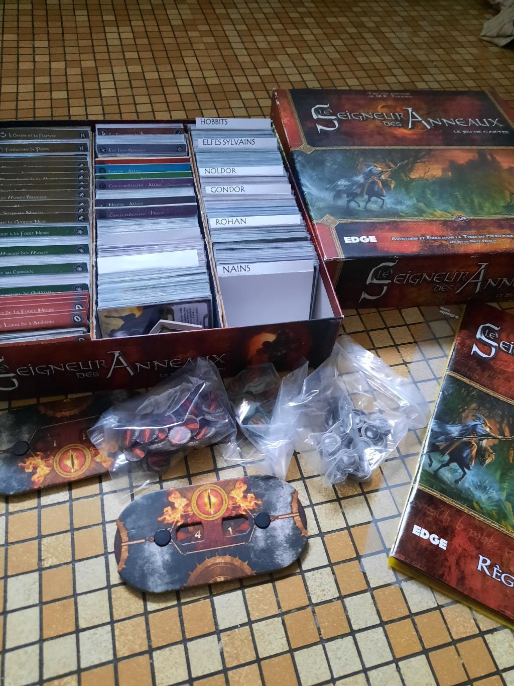 - personnages (decks complets jouables nains, Rohan, Gondor, noldor, elfes, hobbits (impressions couleur cartes + dos de carte avec insertion)