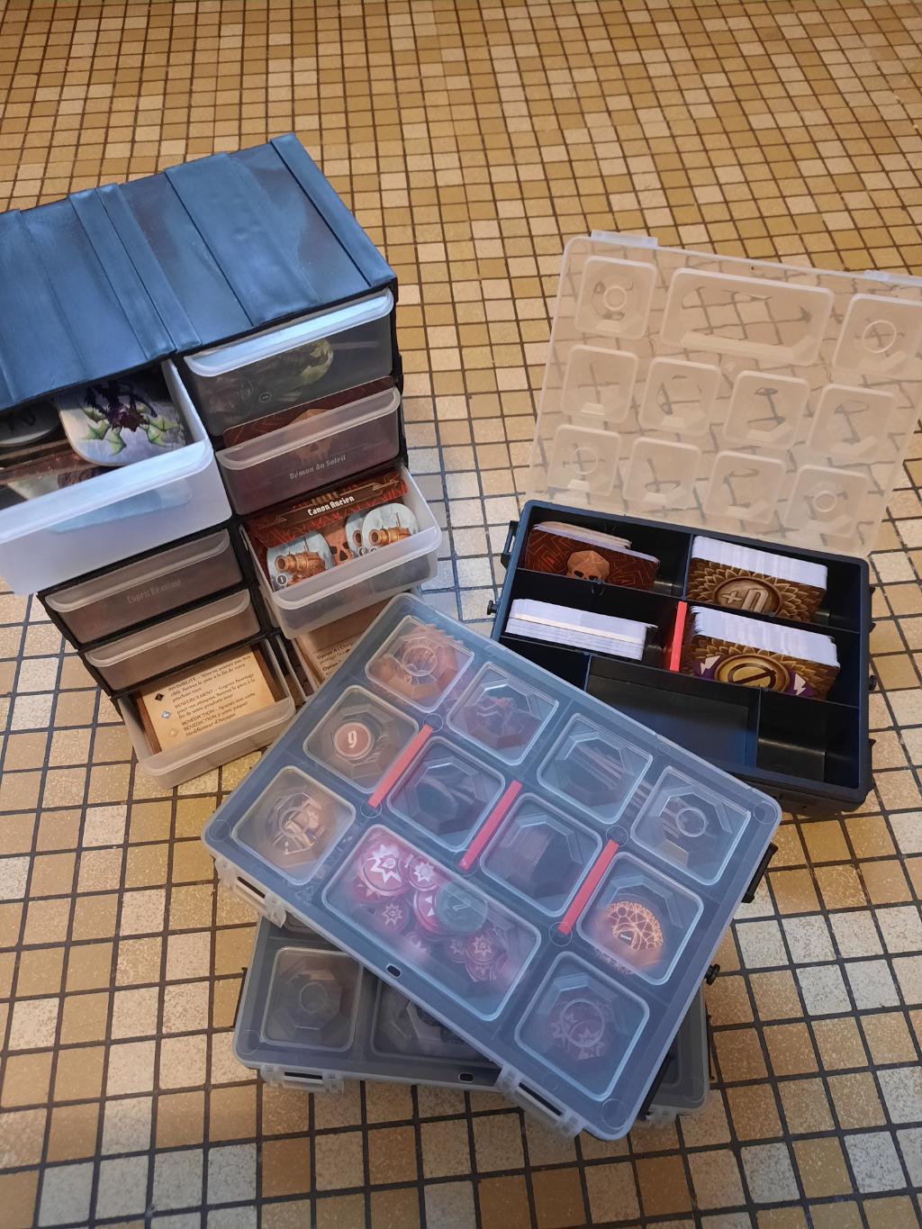 Notamment les ennemies qui sont tous classés par type avec leurs figurines et cartes dans des tiroirs dédiés,idem pour tokens.