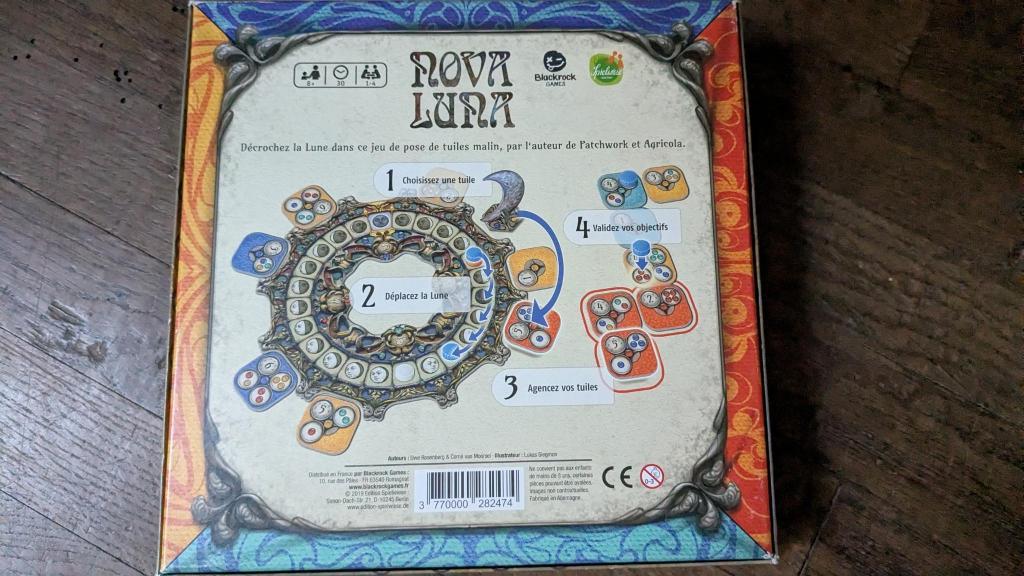La nouvelle lune est le symbole d'un nouveau départ, le moment idéal pour commencer quelque chose de nouveau et planifier votre avenir - et c'est ce que propose Nova Luna (latin pour Nouvelle Lune). Dans chaque partie de ce jeu abstrait de pose de tuiles, vous devez planifier votre avenir sous un angle nouveau, en développant une nouvelle stratégie pour faire face à ce que la roue lunaire a à vous offrir.