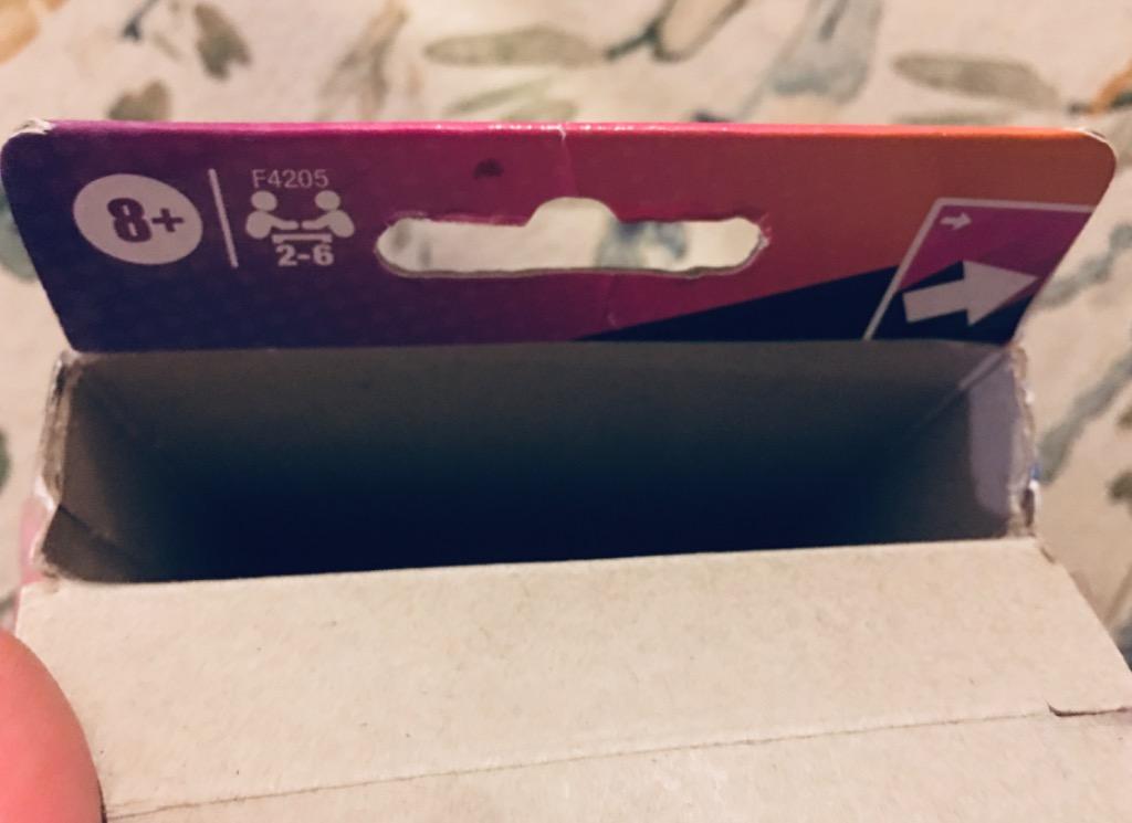 La boîte est en bon état: elle ferme mais les petits rabats sur les côtés ont été arrachés.