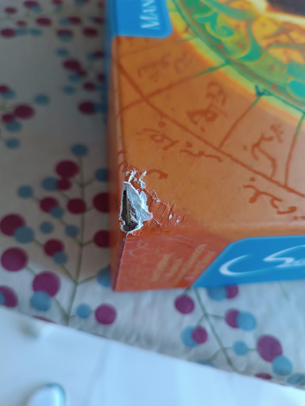 Le jeu a juste quelques parties au compteur, les éléments de jeu sont en très bon état, mais malheureusement la boîte est tombée ce qui l'a abîmé....😓 Cf photos