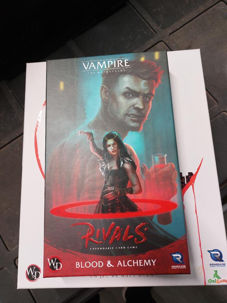 Je vends la boîte de base en vf de Vampire Rivals issu du kickstarter avec jetons premiums en plastique et les sleeves + l'extension Blood and Alchemy en vo.