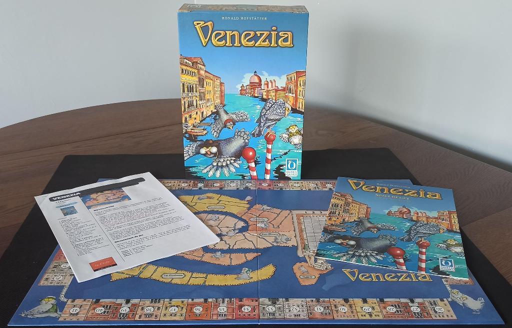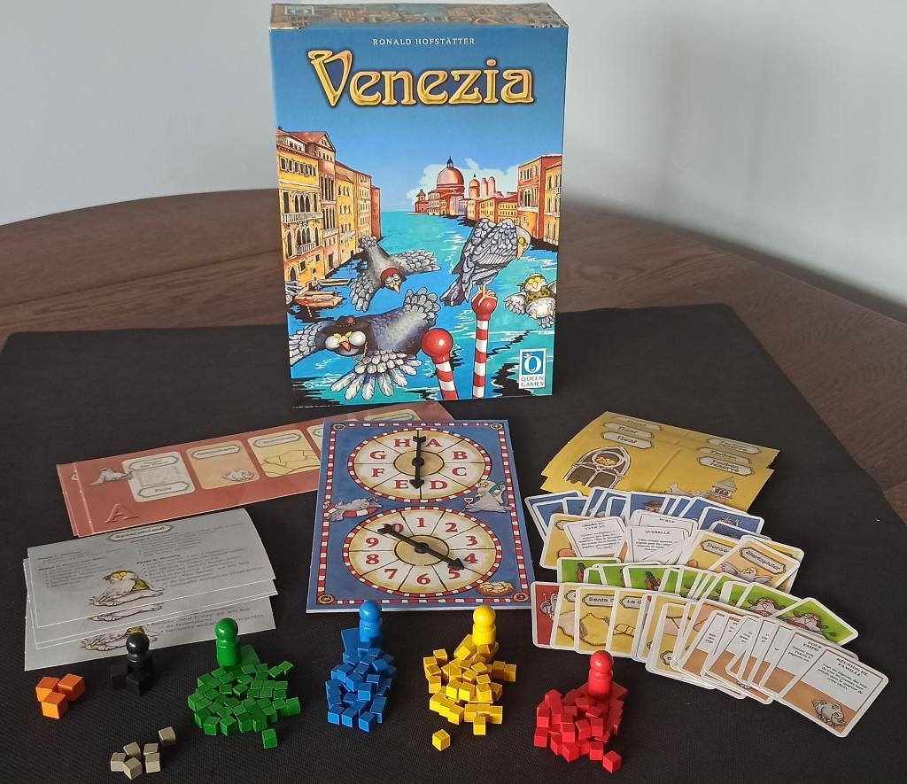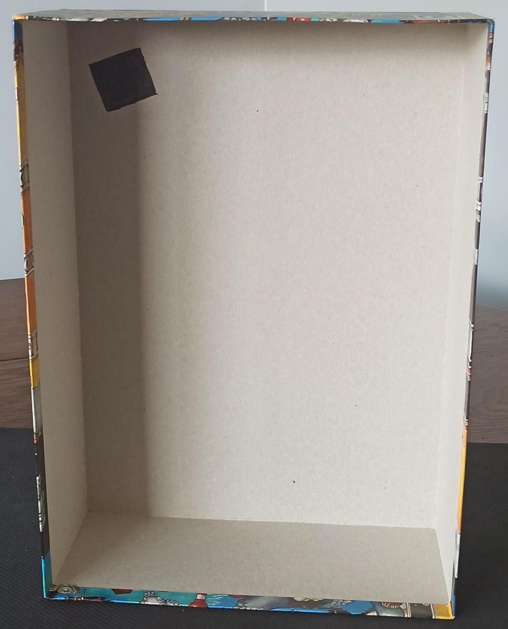 La boîte est en allemand. Il y a les règles en français à l'intérieur. Sur les cartes en allemand, la traduction en français a été collée (voir une des photos où on voit quelques cartes ainsi traduites). Dans le couvercle de la boîte, il y a un carré qui masque mon nom.