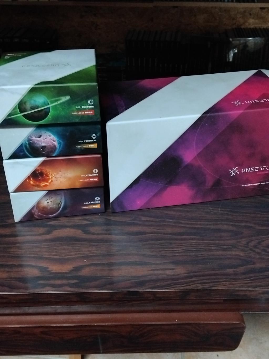 Je vends le jeu unsettled compose de la boîte de base (avec 2 planètes a l’intérieur) + les 4 autres planètes étant sorti en VF chez Lucky Duck Games.
