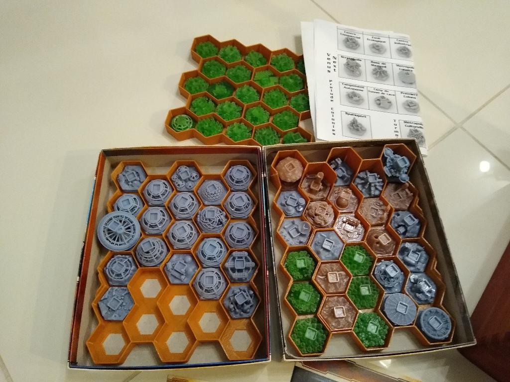 - batiments et forêts en impression 3D custom (qui rentre dans la boite aussi) pour le jeu de base, venus, prelude, colonies et turmoil