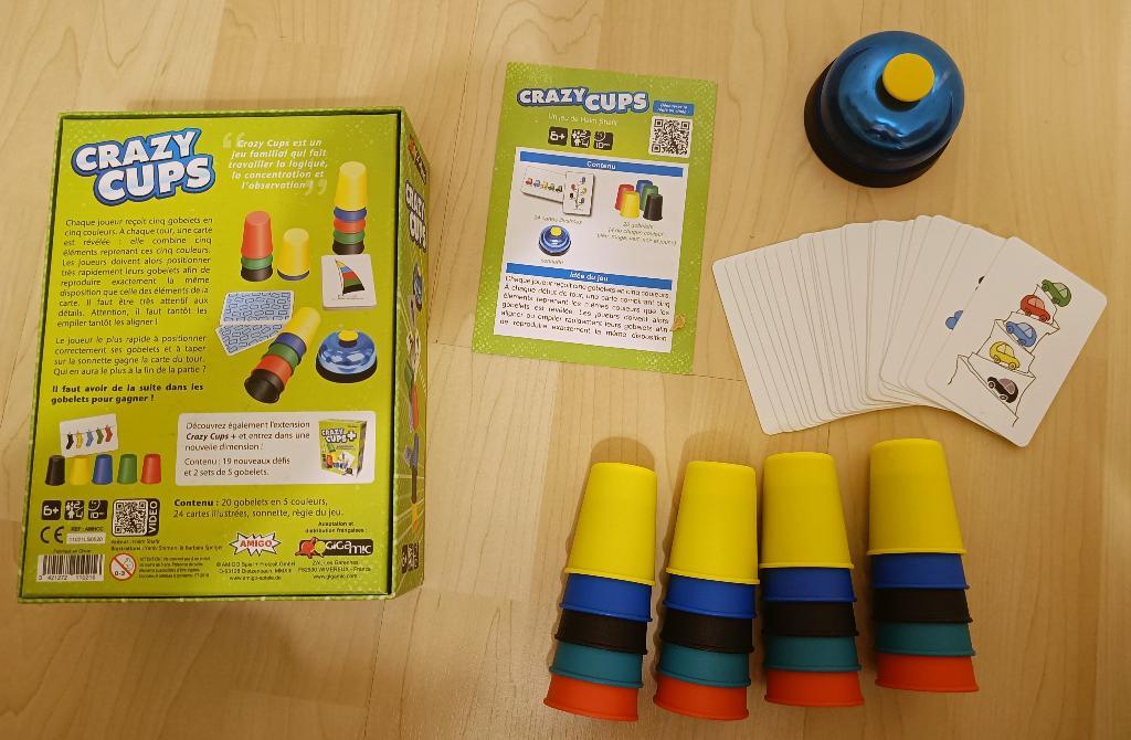 Jeu de société "Crazy Cups", en version française, complet, et en parfait état.