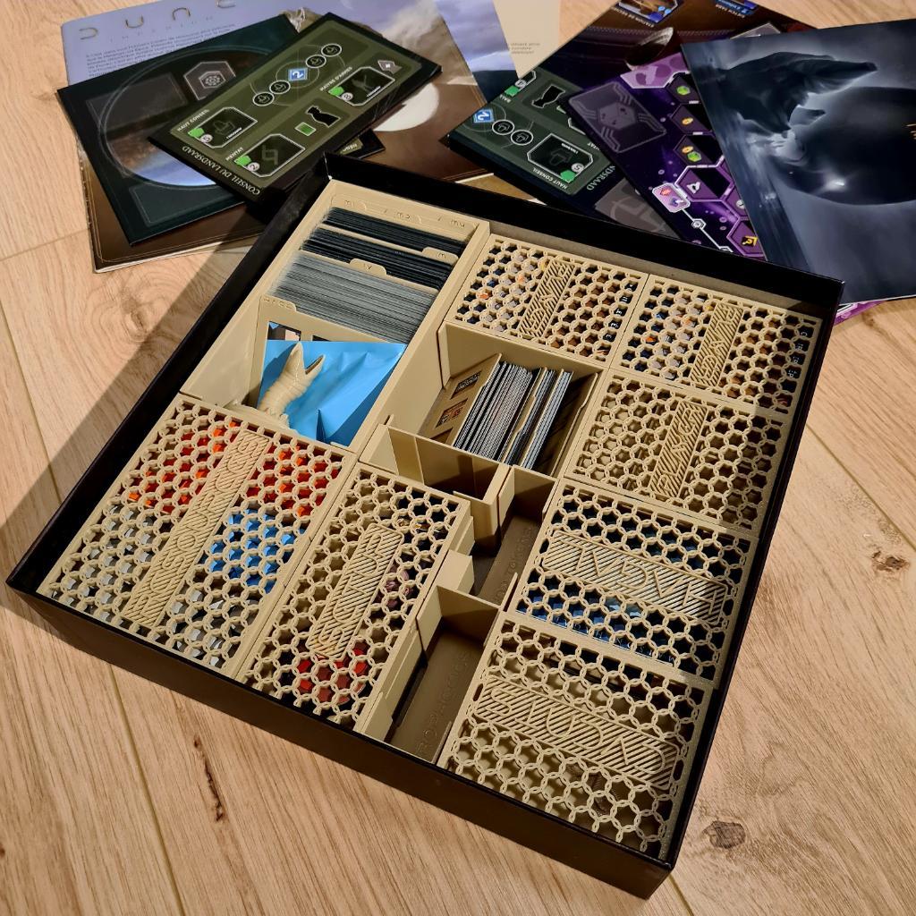 Impression 3D - Dune imperium - Inerts de rangement premium .🎲 Transforme ton expérience Dune Imperium avec ce set d'organisation complet conçu pour le jeu de base et les extensions Rise of IX et Immortality. Installation ultra-rapide, rangement optimisé et compatibilité totale avec les extensions communautaires.